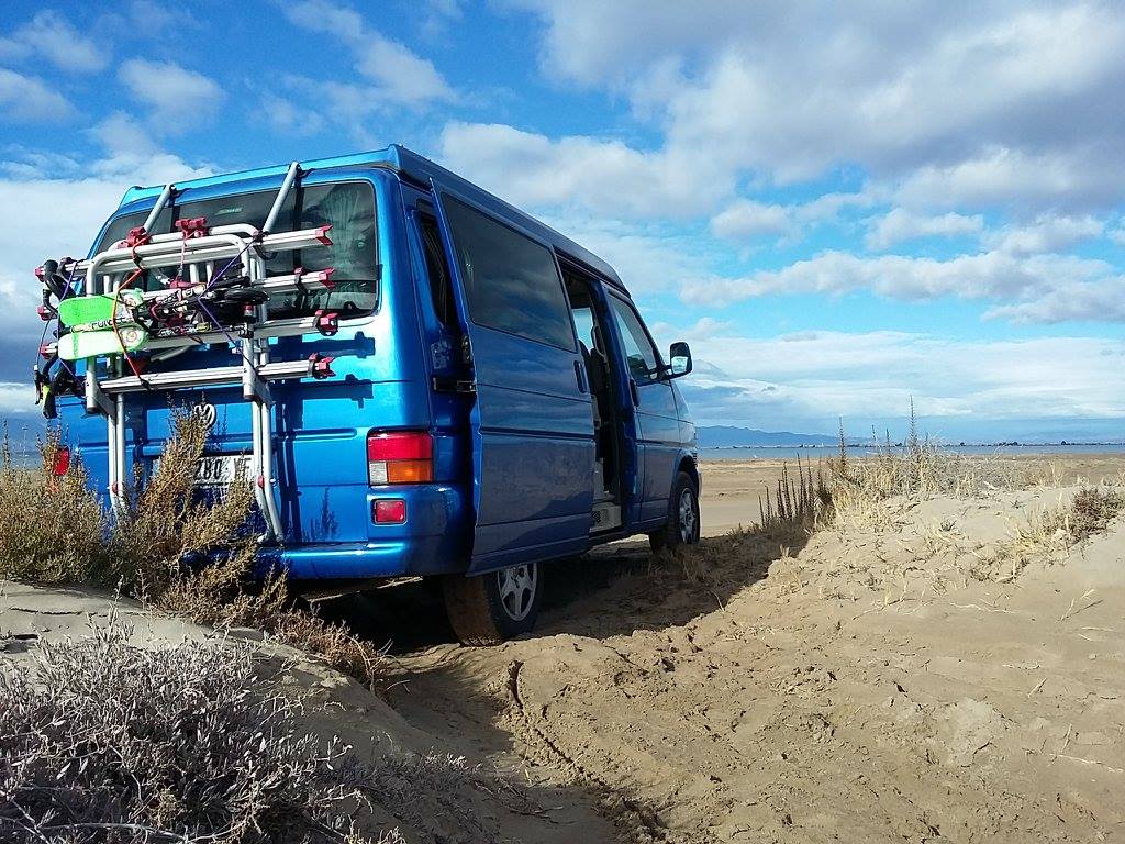 Après avoir déposé la plus grande en Gare de Marseille, nous prenons le cap de l’Espagne à 4. Et oui, après un point météo, le soleil était plus généreux là-bas qu’en Italie… Premier arrêt à côté du Lac de Sigean.