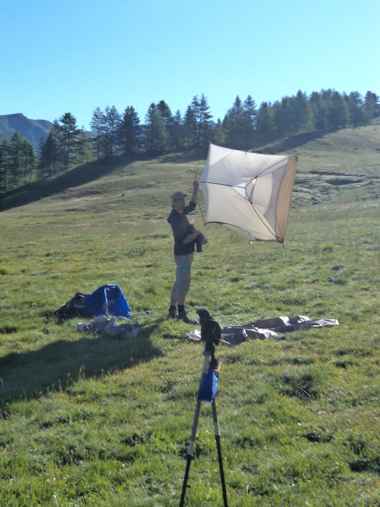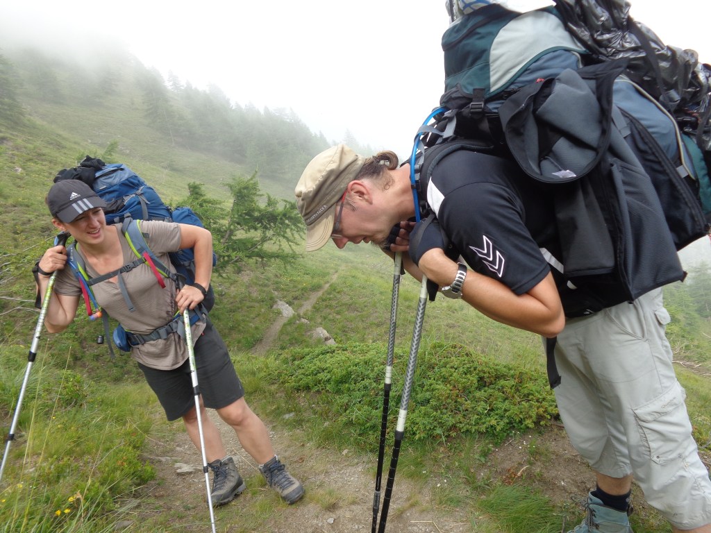 C’était une longue journée, l’après midi n’était presque que en descente. Nous avons trouvé refuge dans un champ vers un petit hameaux d’alpage.