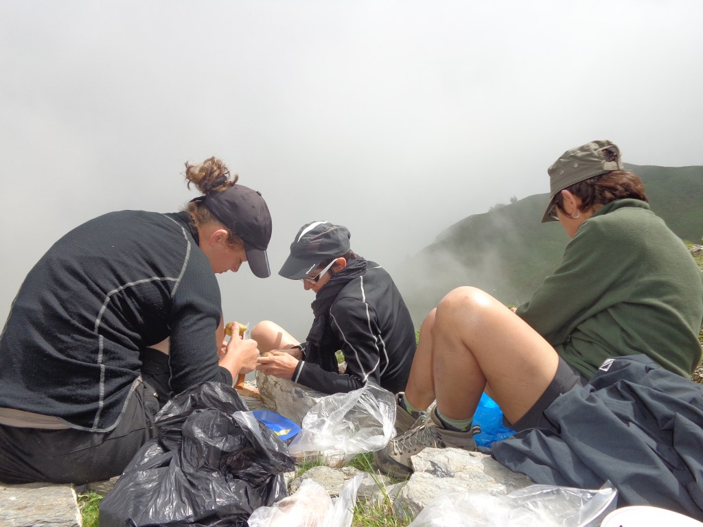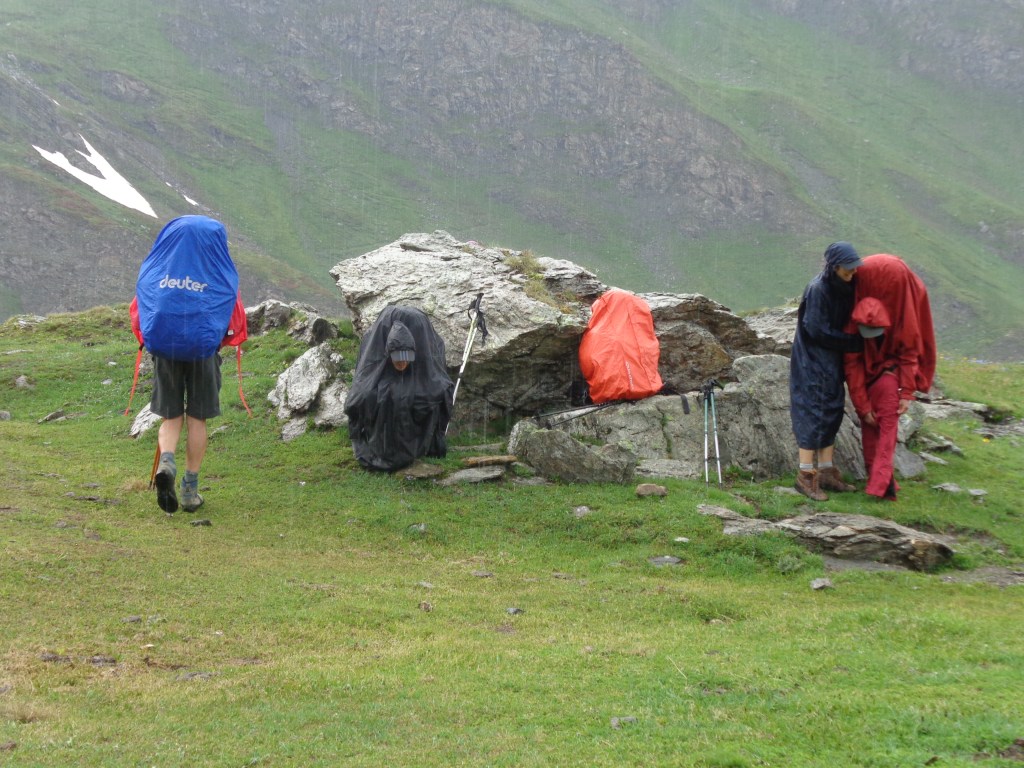 A la base nous voulions dormir un peu en dessous du refuge du Lago Verde, mais un orage de grêle nous a un peu forcé la main. Nous avons passé la nuit au chaud sous le refuge.