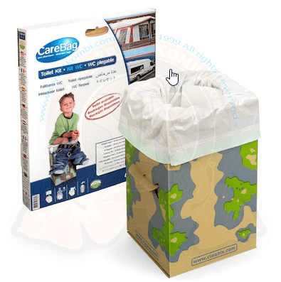 • L’équipementier Serial Kombi propose aussi une boite en carton, le kit WC CAREBAG qui permet de faire voyager son caca.
