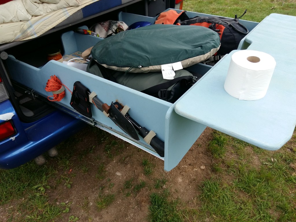 Pour ce qui est de la vie de Vanfifer, eh bien c’est pareil, en journée et dans les moments un peu pressés, la petite pelle est dispo en ouvrant la porte. Pour les arrêts un peu plus longs, la grosse pelle est a portée de main dans le coffre. C’est un rythme à prendre.