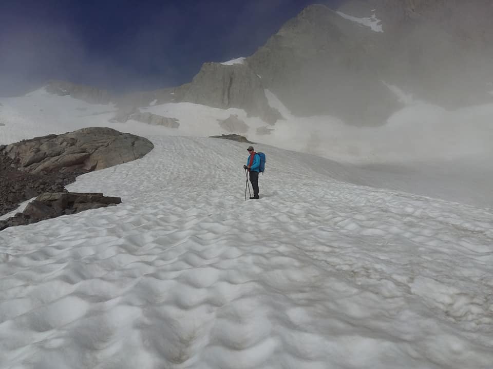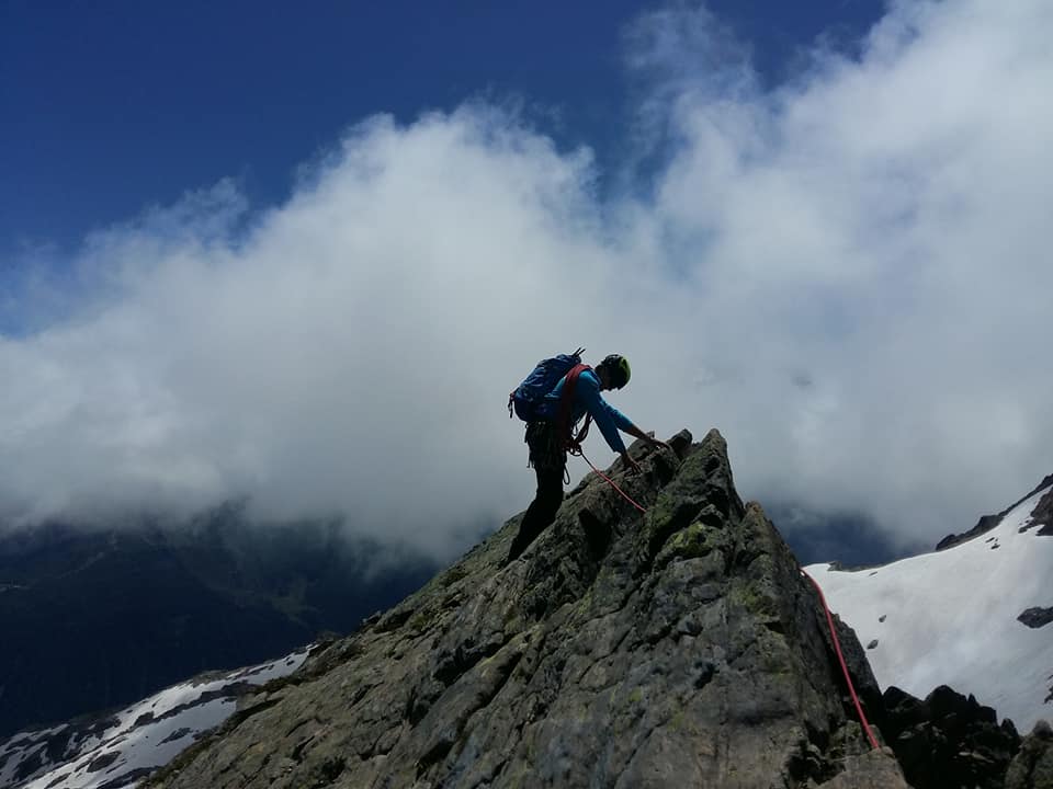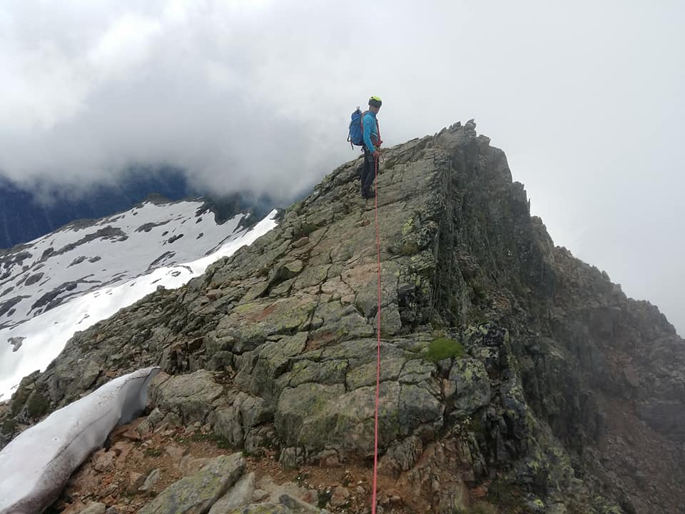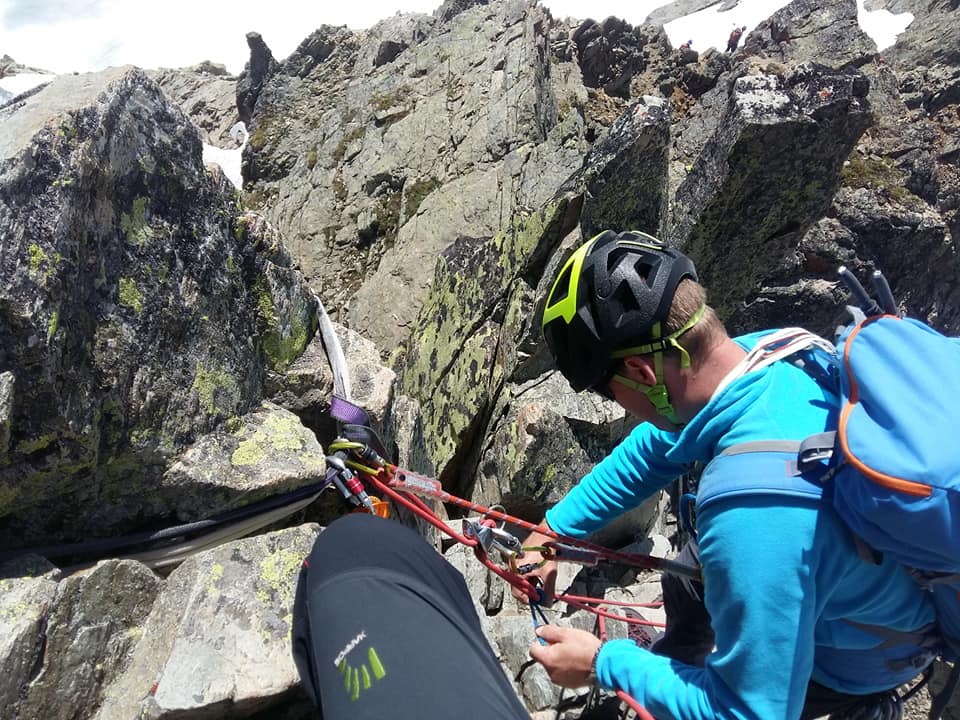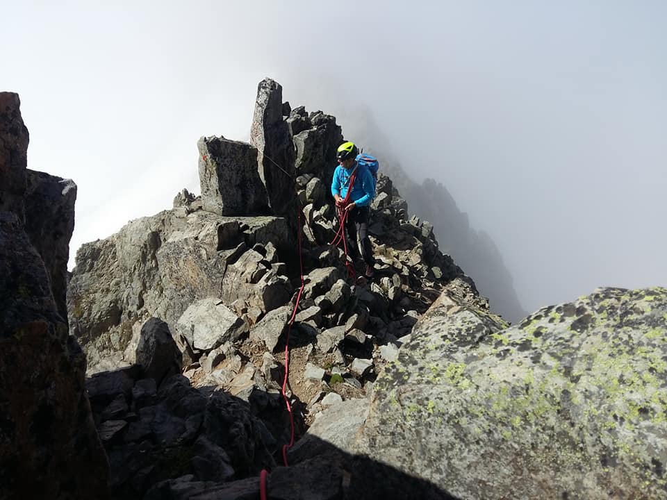 Jour 2 – Ascension de l’aiguille du Belvédère à 2965m par la combe depuis le refuge du Lac Blanc. Voie normale corde tendue PD-2>2