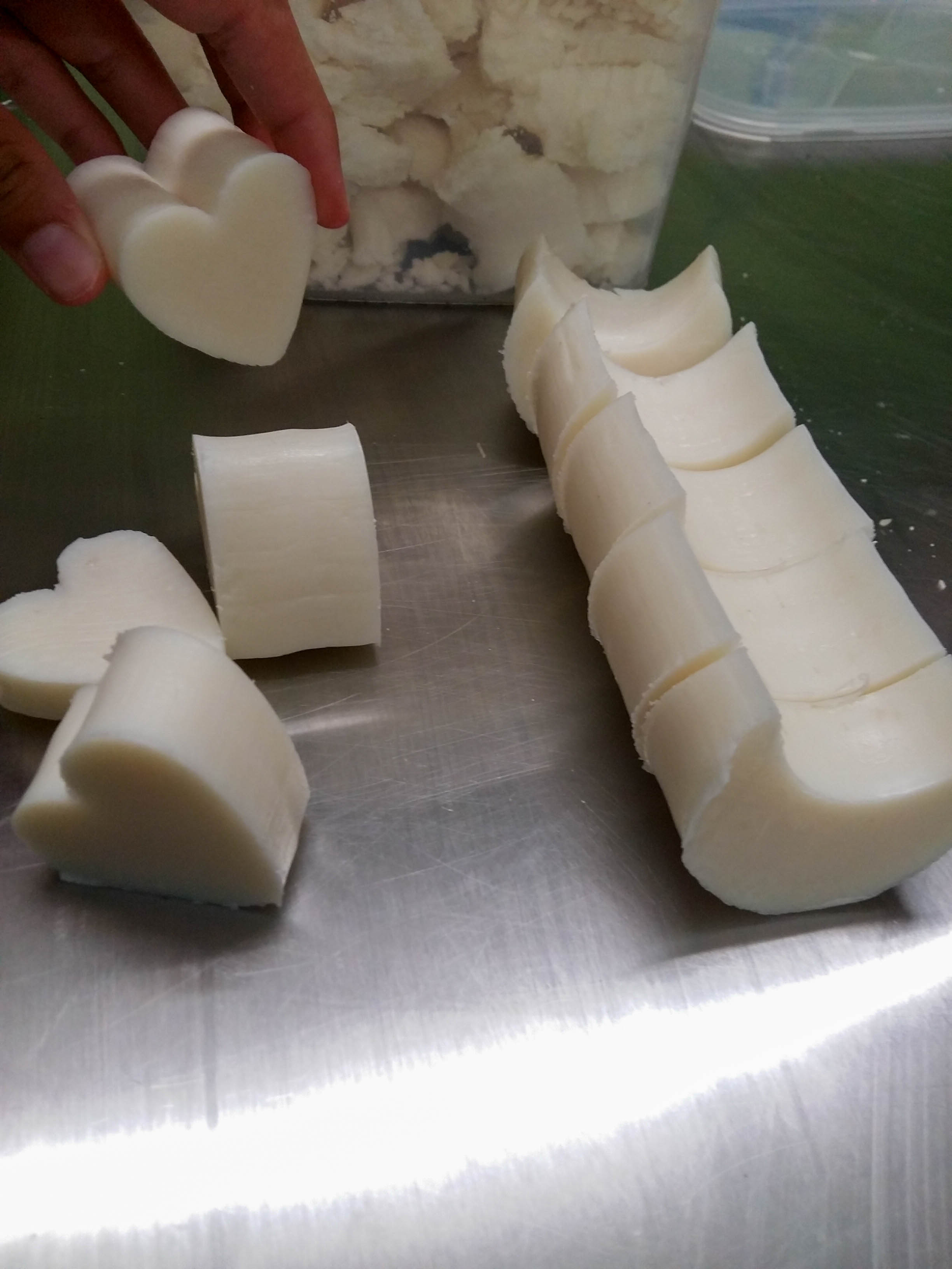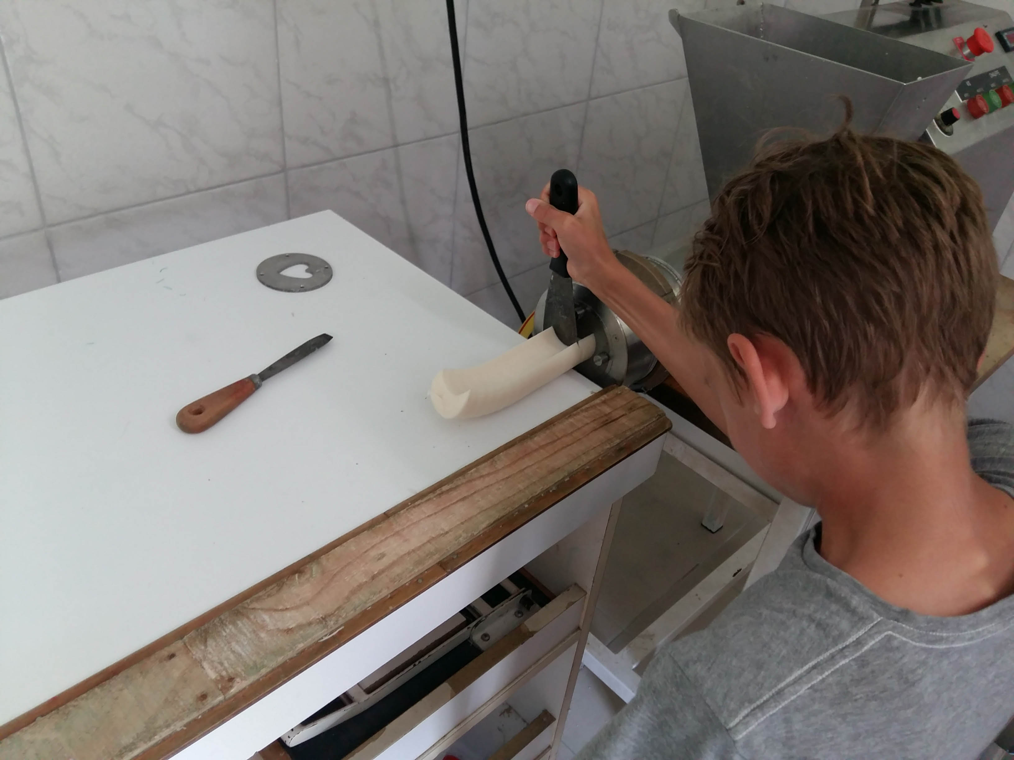 Après une visite du laboratoire et une explication sur les ingrédients qu’il utilise, il a proposé aux enfants de faire leur propre savon. Ils ont eu à choisir le moule pour la forme, découper le « boudin » de savon à la sortie de la presse et former à la bonne taille les savons suivant leur forme.