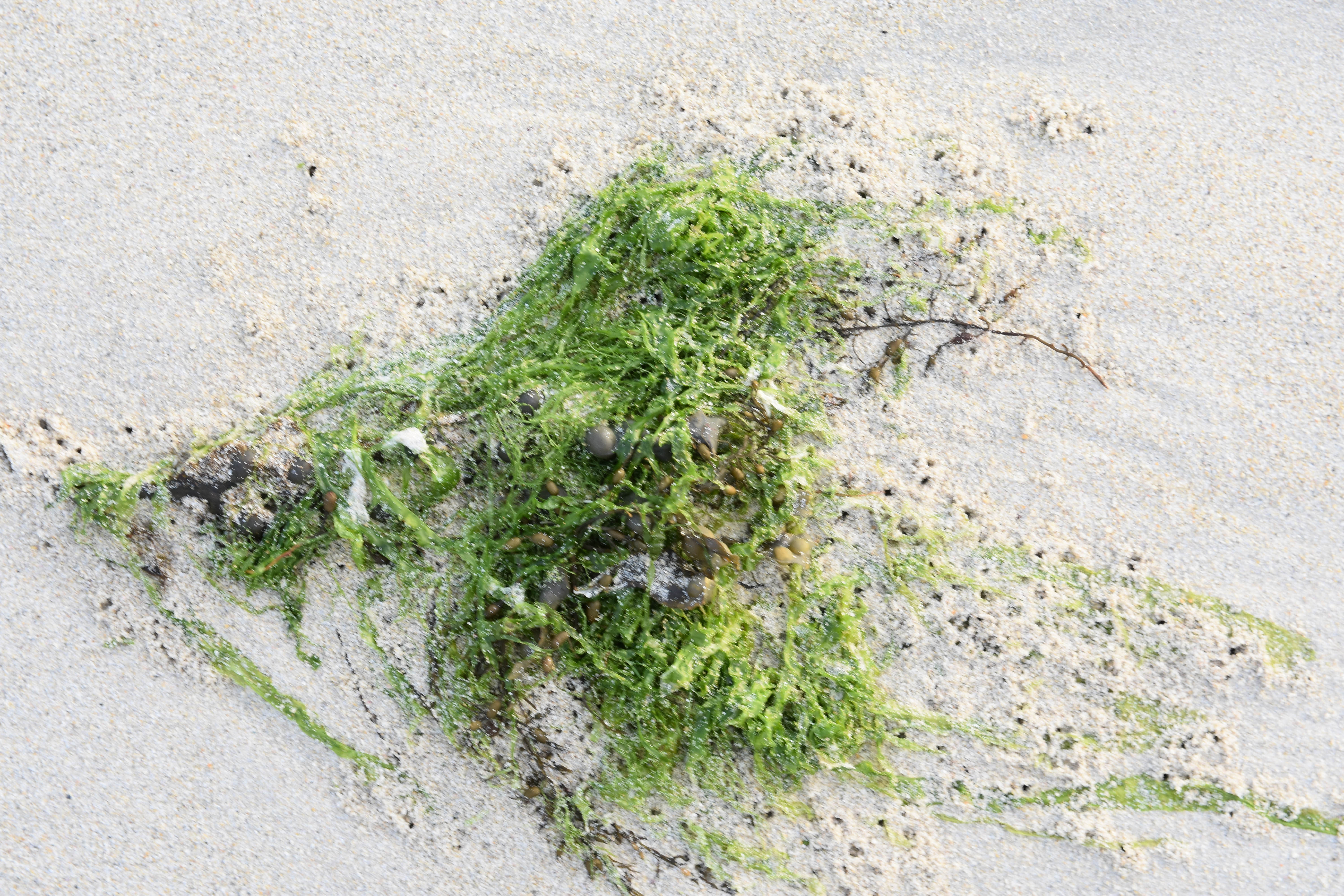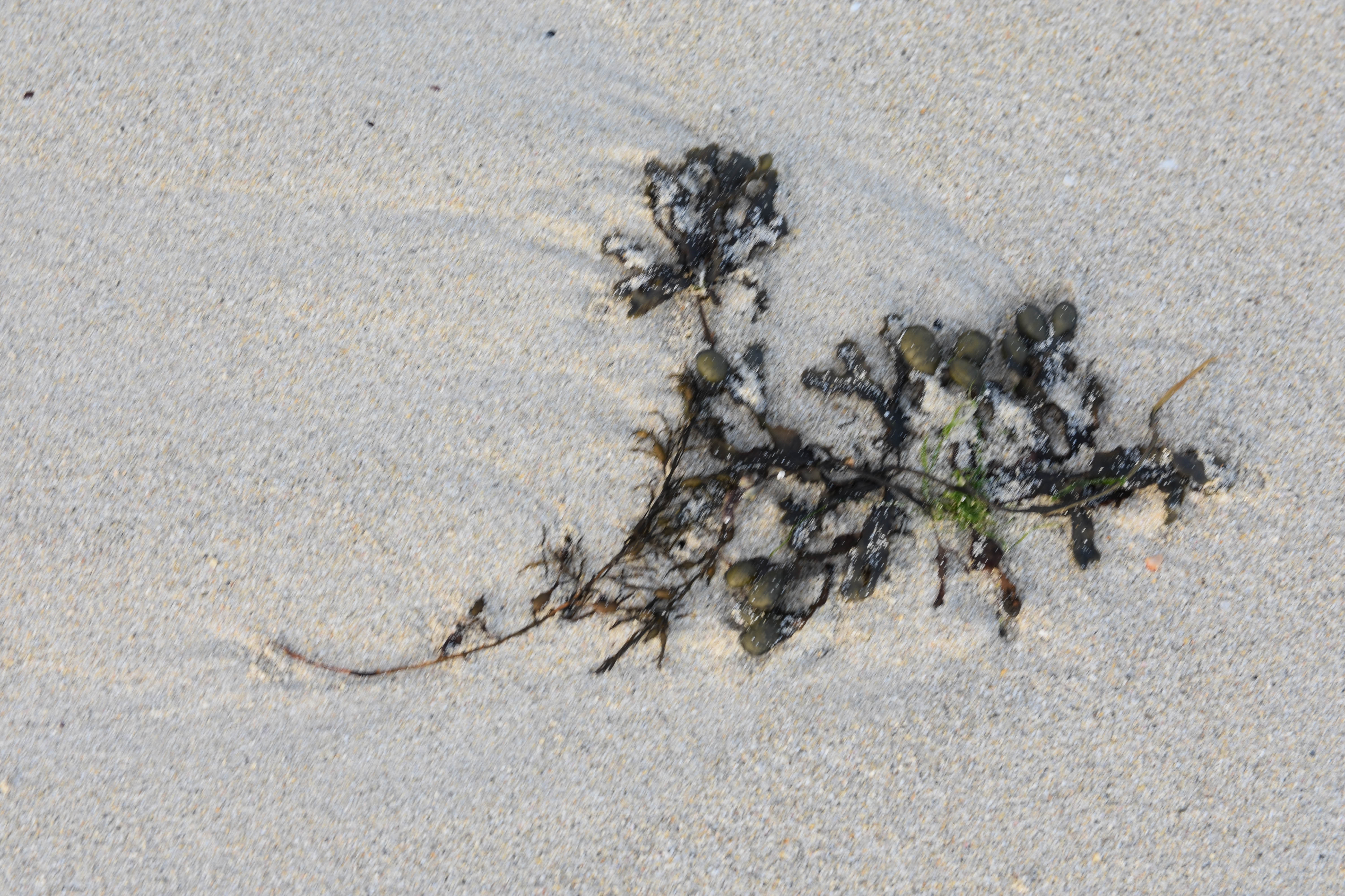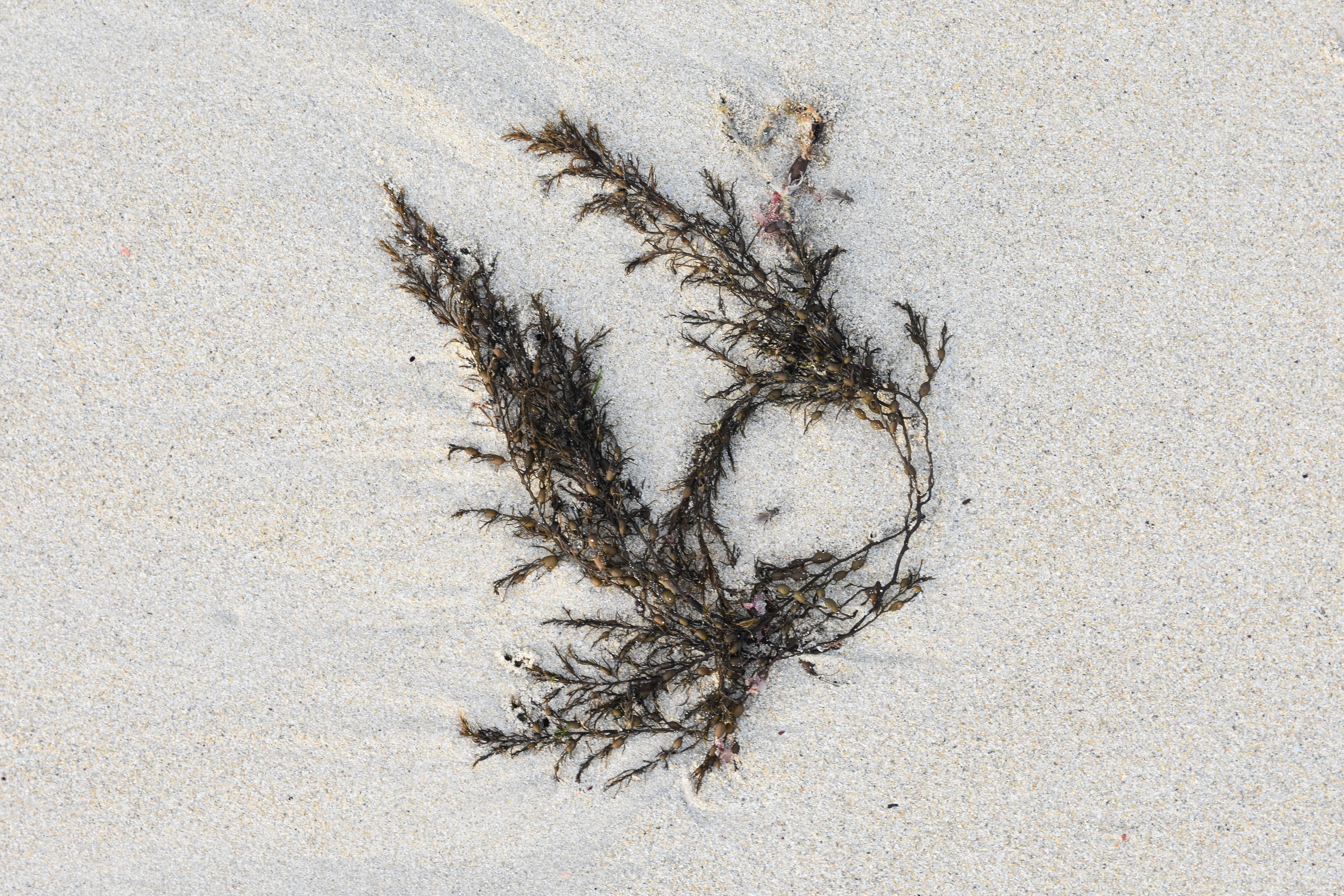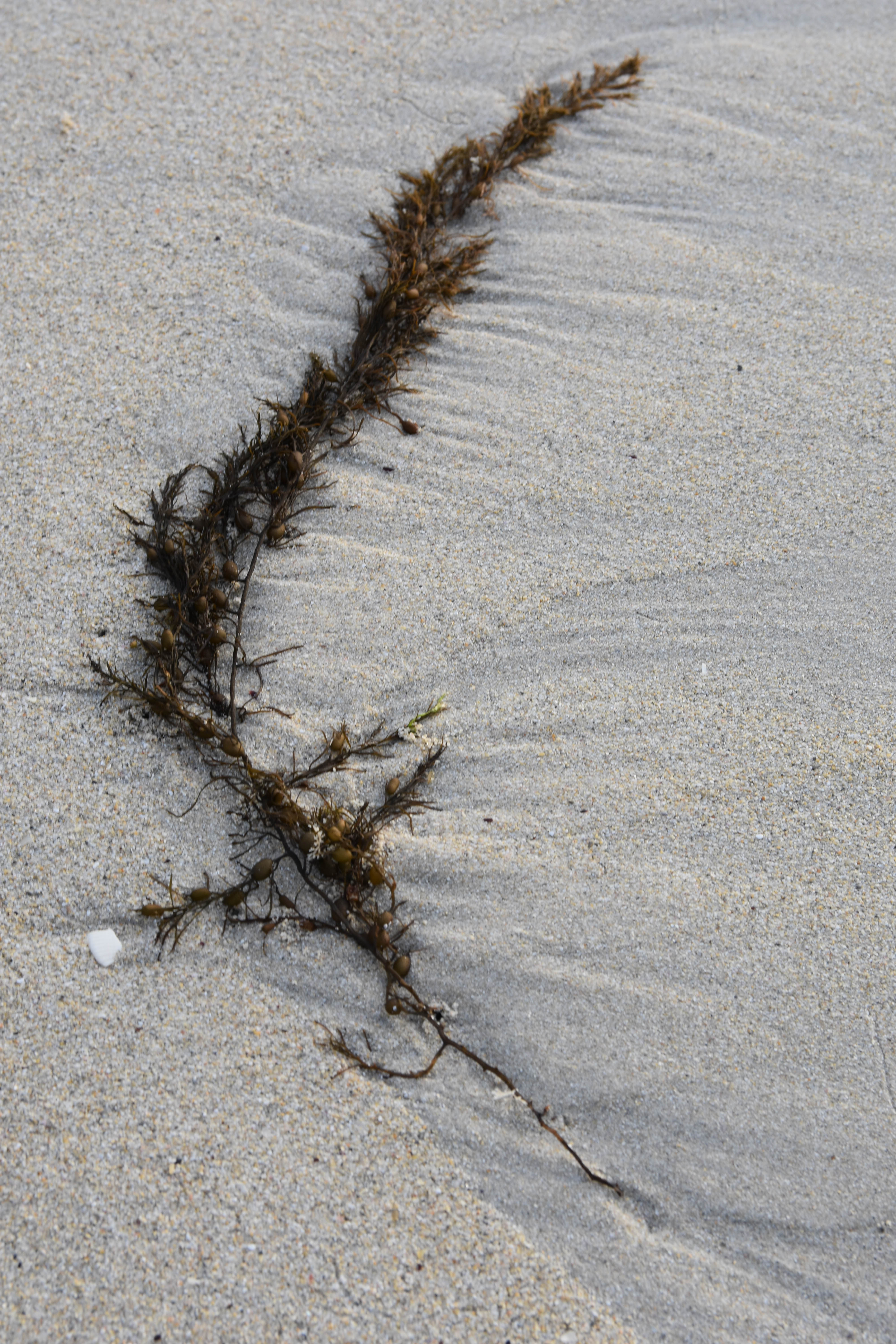 Je ne sais où, Sophie avait visité une galerie d’exposition où des artistes présentaient des tableaux montrant sous leurs meilleurs angles des algues et autres morceaux de flore marine sur le sable. Mi sculpture, mi carte postale, mi peinture… des éléments graphiques.