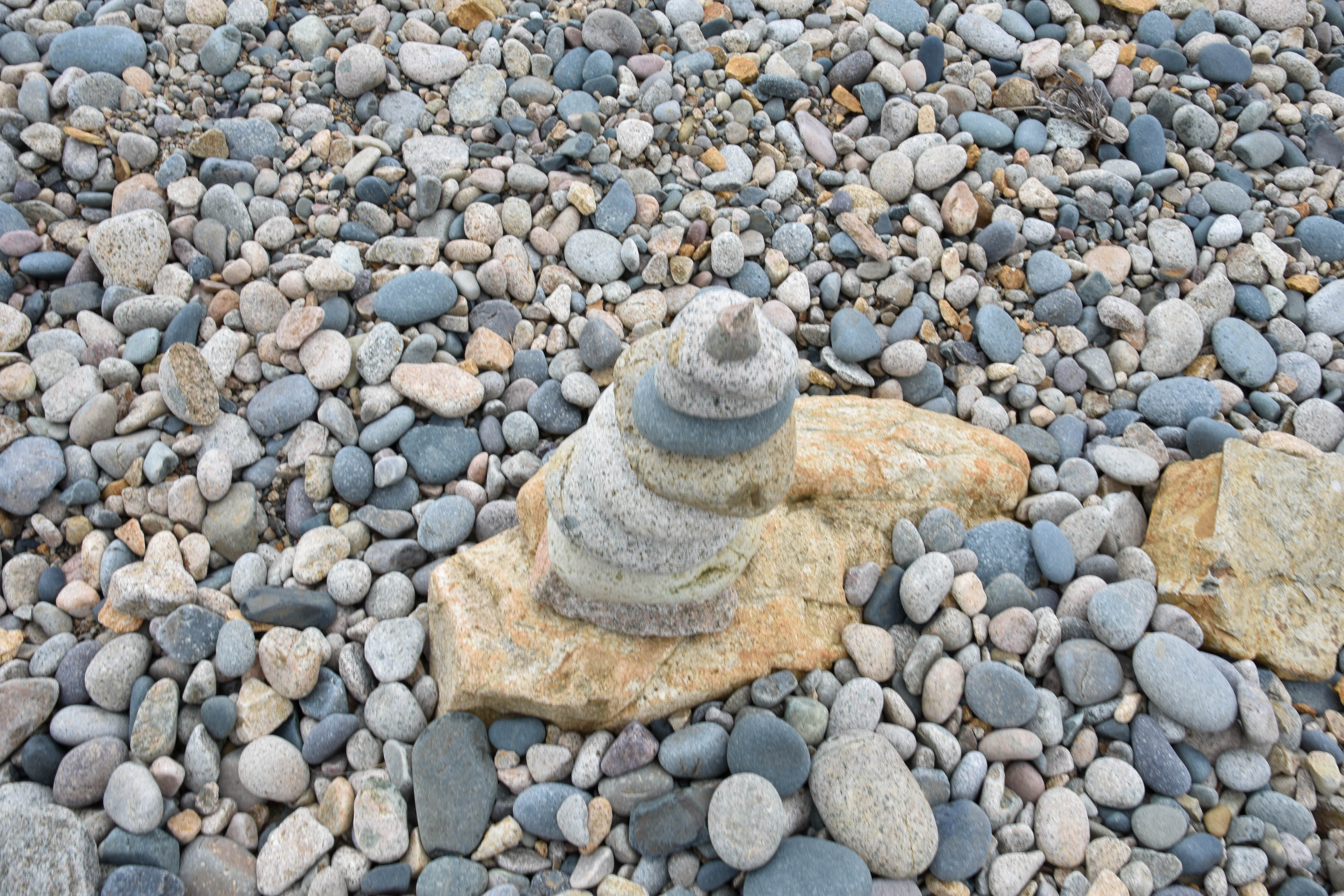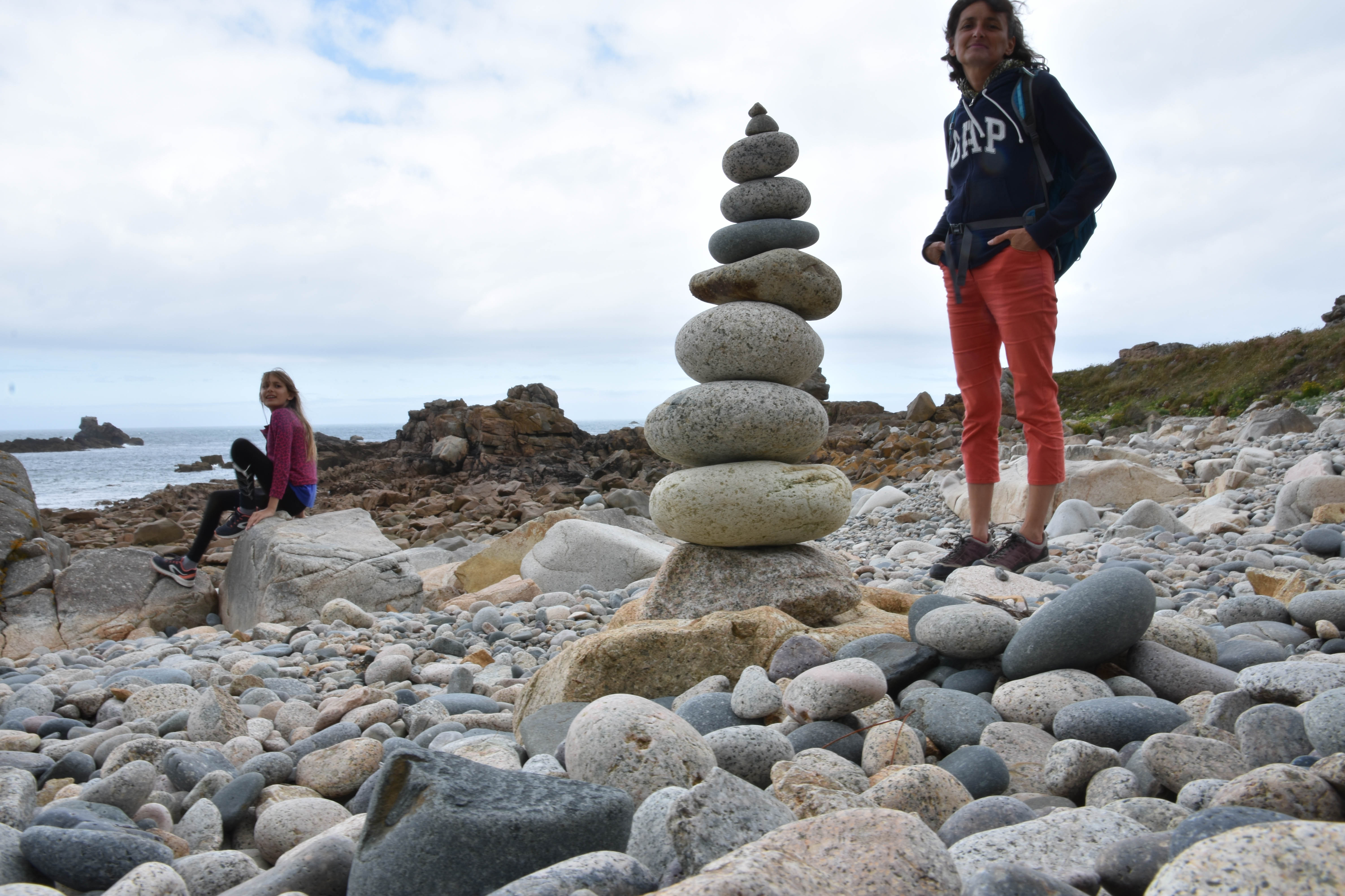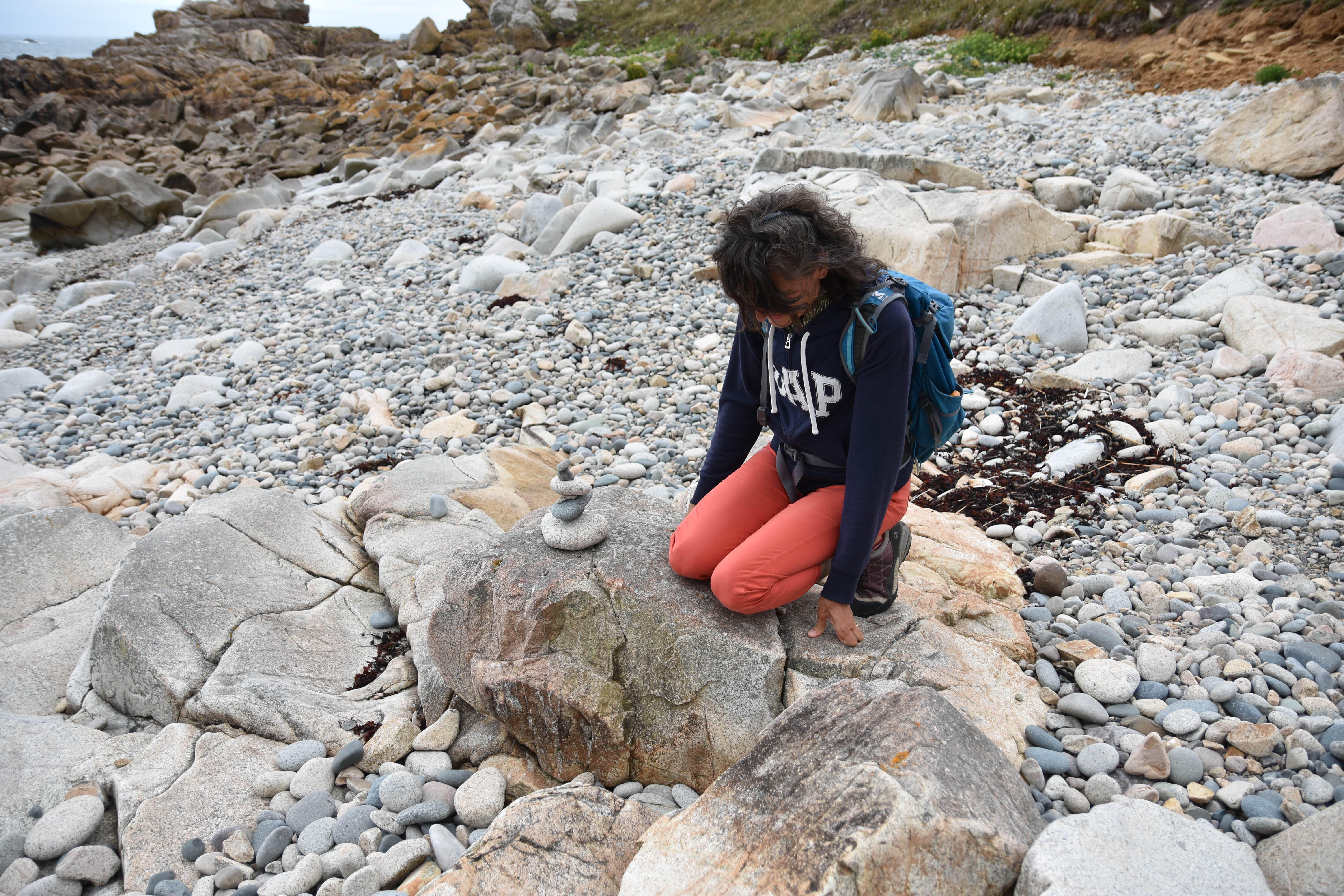 Sur place, de petite crique de galets qui nous appelle pour un concours de sculpture.