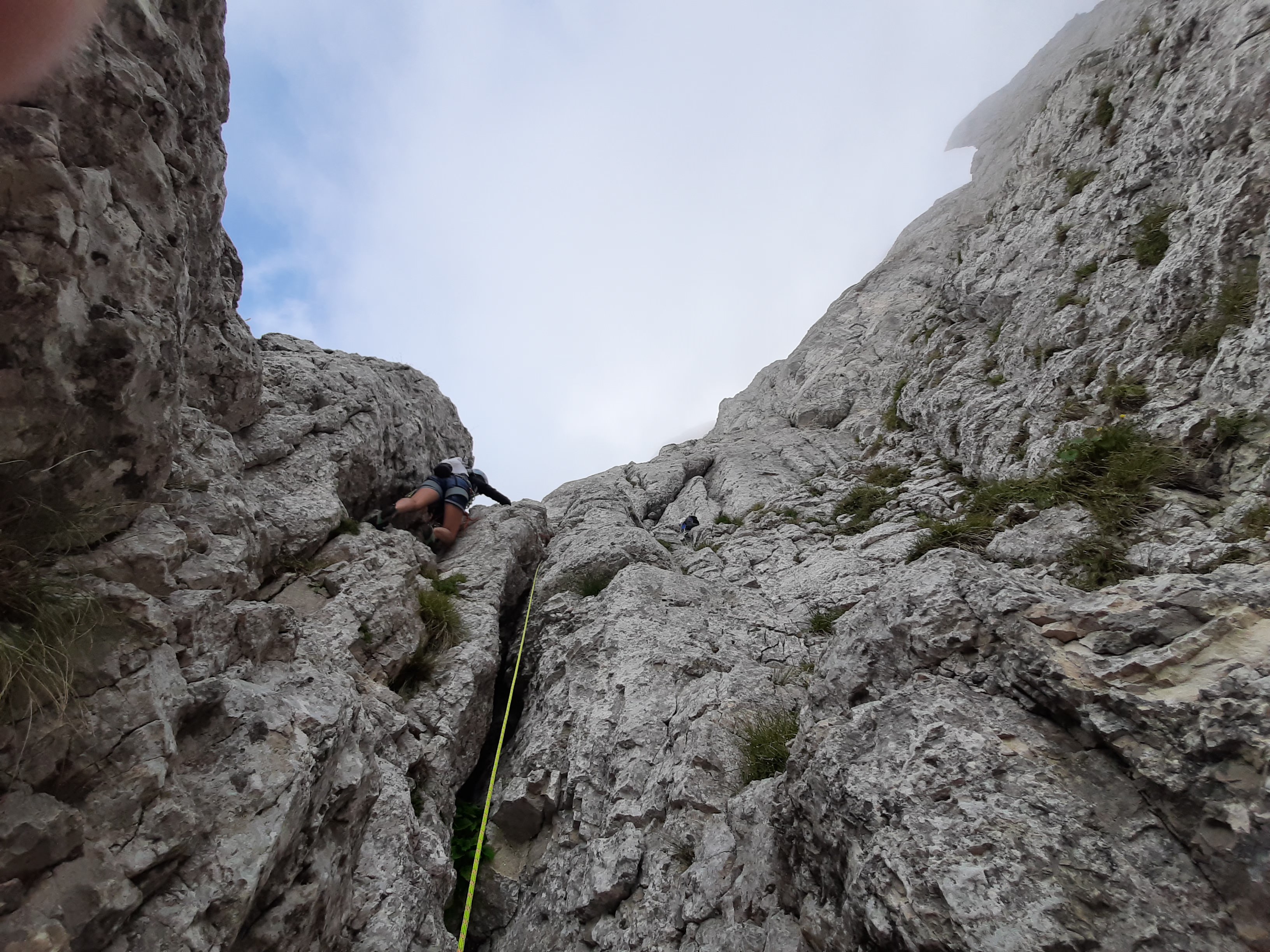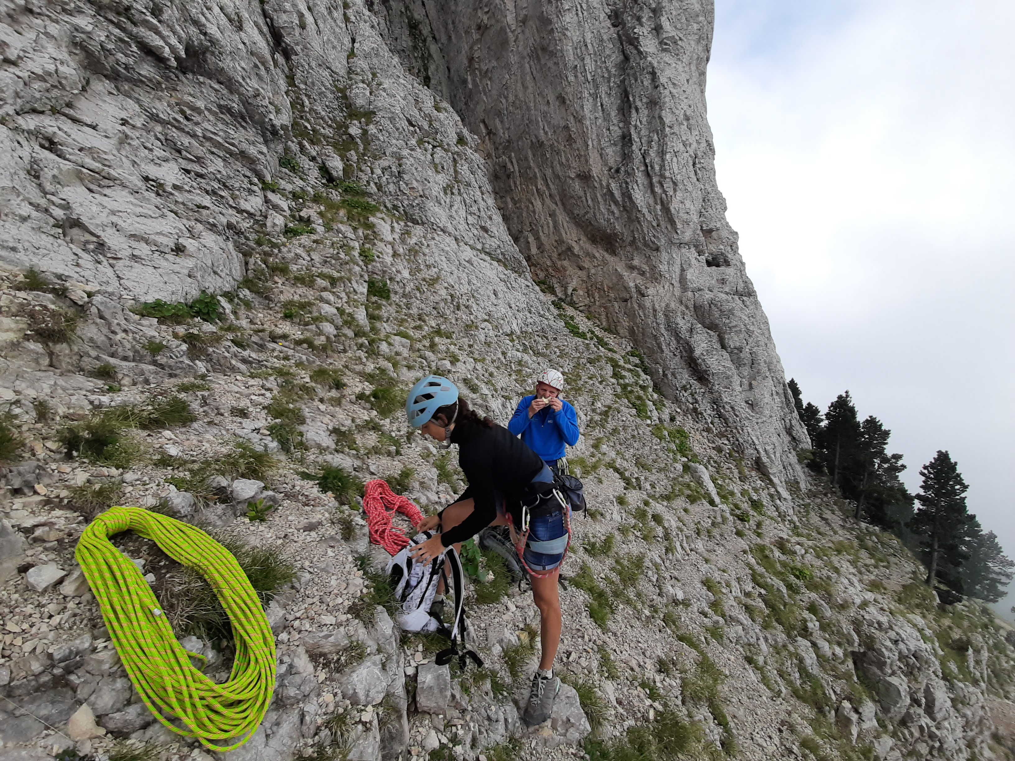 Cette voie, n’est jamais dure. L’escalade est vraiment simple. Un câble est même en trop sur certains passage. Le plus compliqué c’est la lecture de la voie pas forcement facile. Il n’y a que peu de point, mais les relais sont vraiment safe et confort. Avec un jeu de corde à double de 60m nous avions toujours plus de longueur que ce qu’il fallait entre les relais.