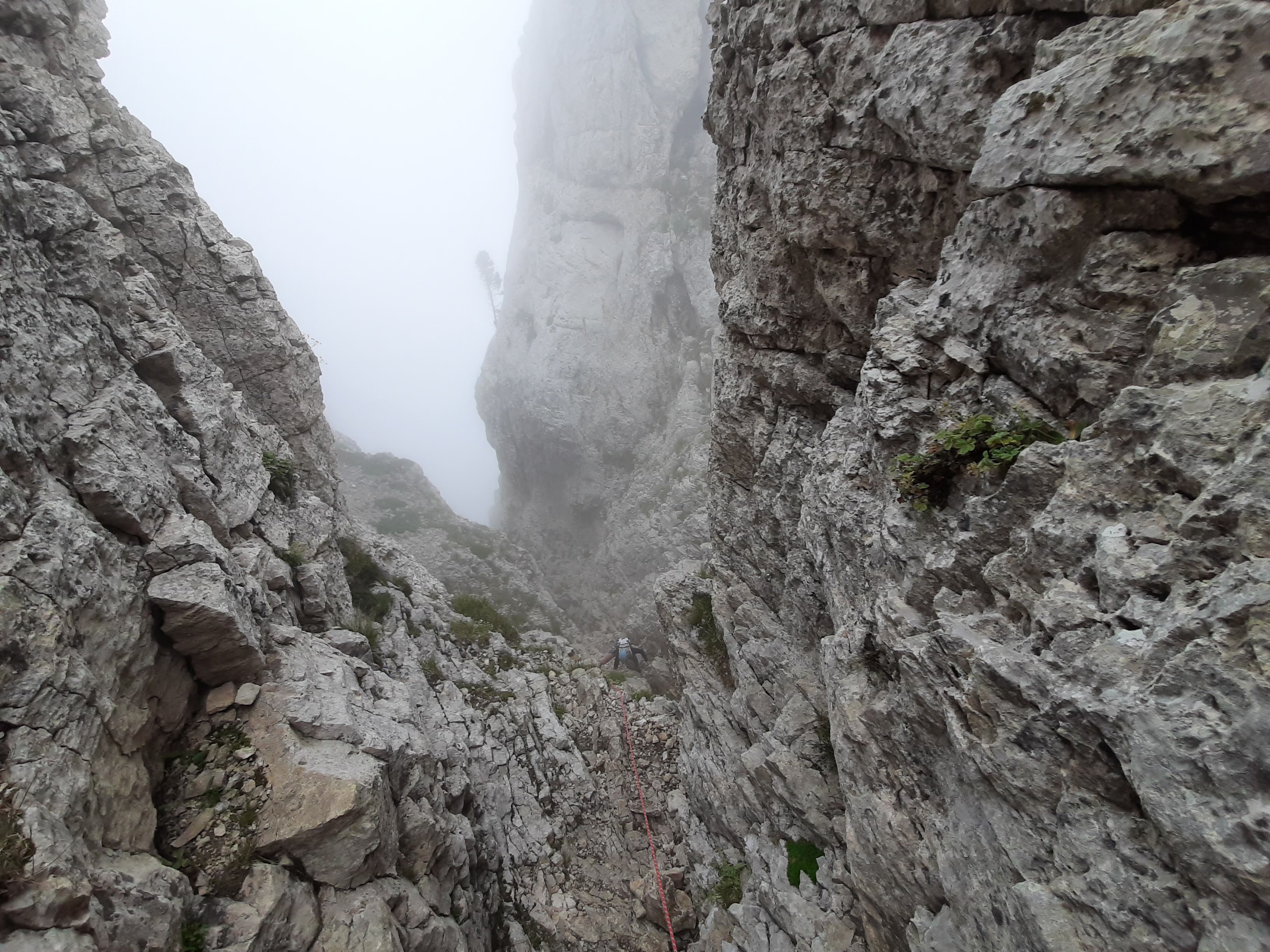 Finalement début de l’approche à 8h50. Arrivée à l’attaque 1h30 plus tard après plus de 700m de D+ en rando.