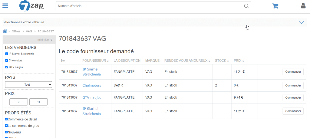 Nous commandons régulièrement sur le site Serial Kombi, sur le site Pieces Auto24 ou sur le site Auto-Doc.