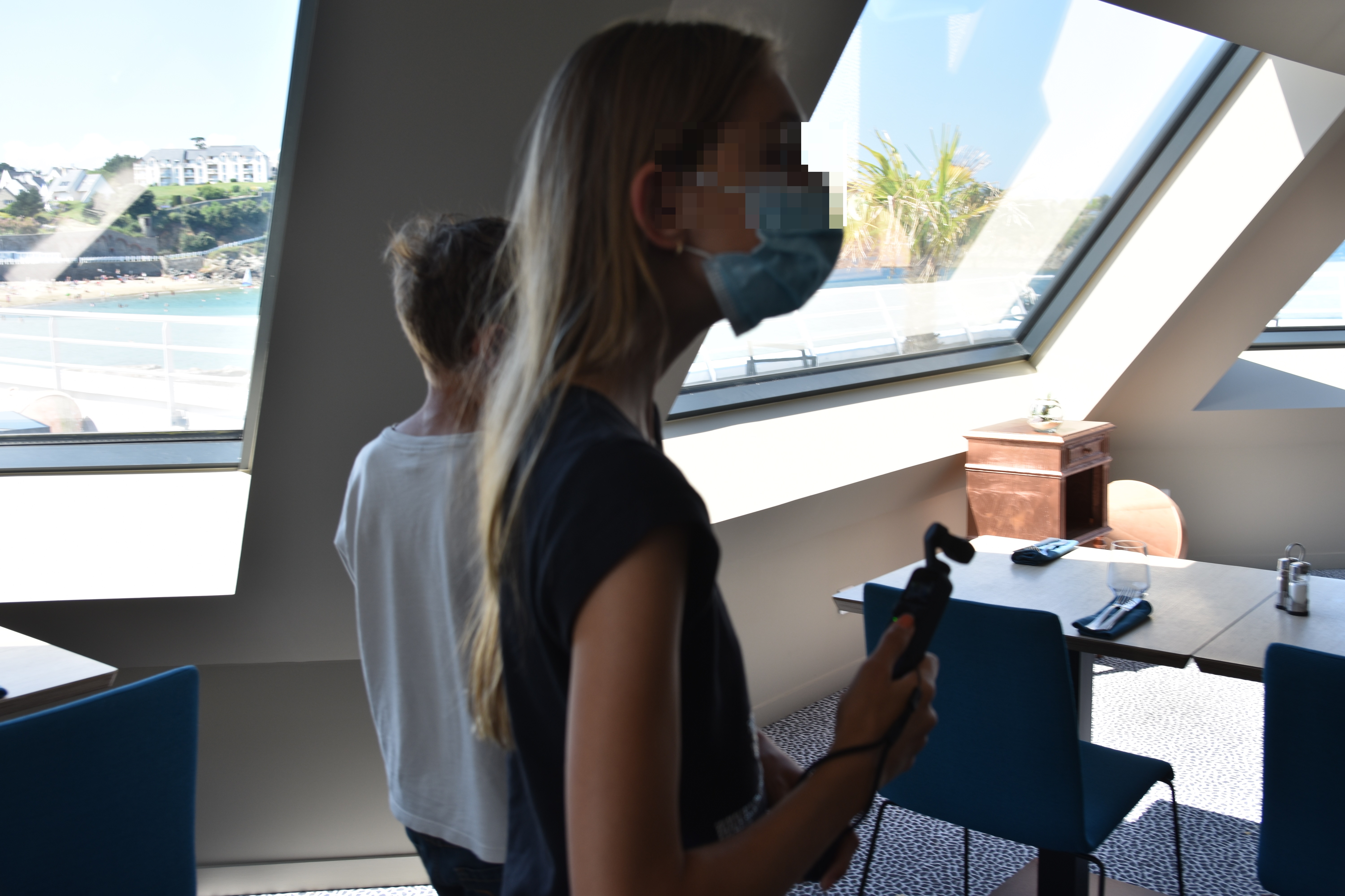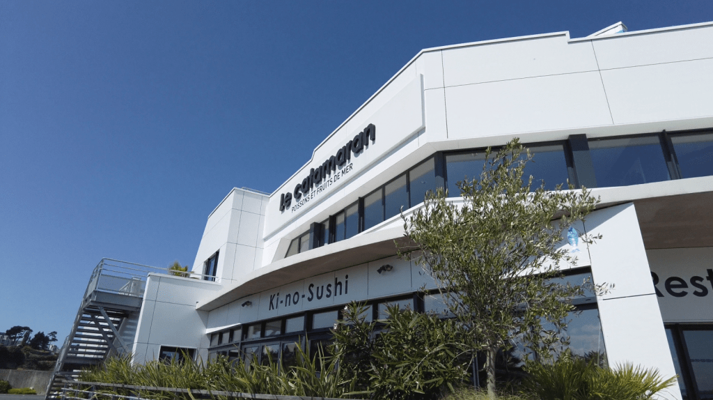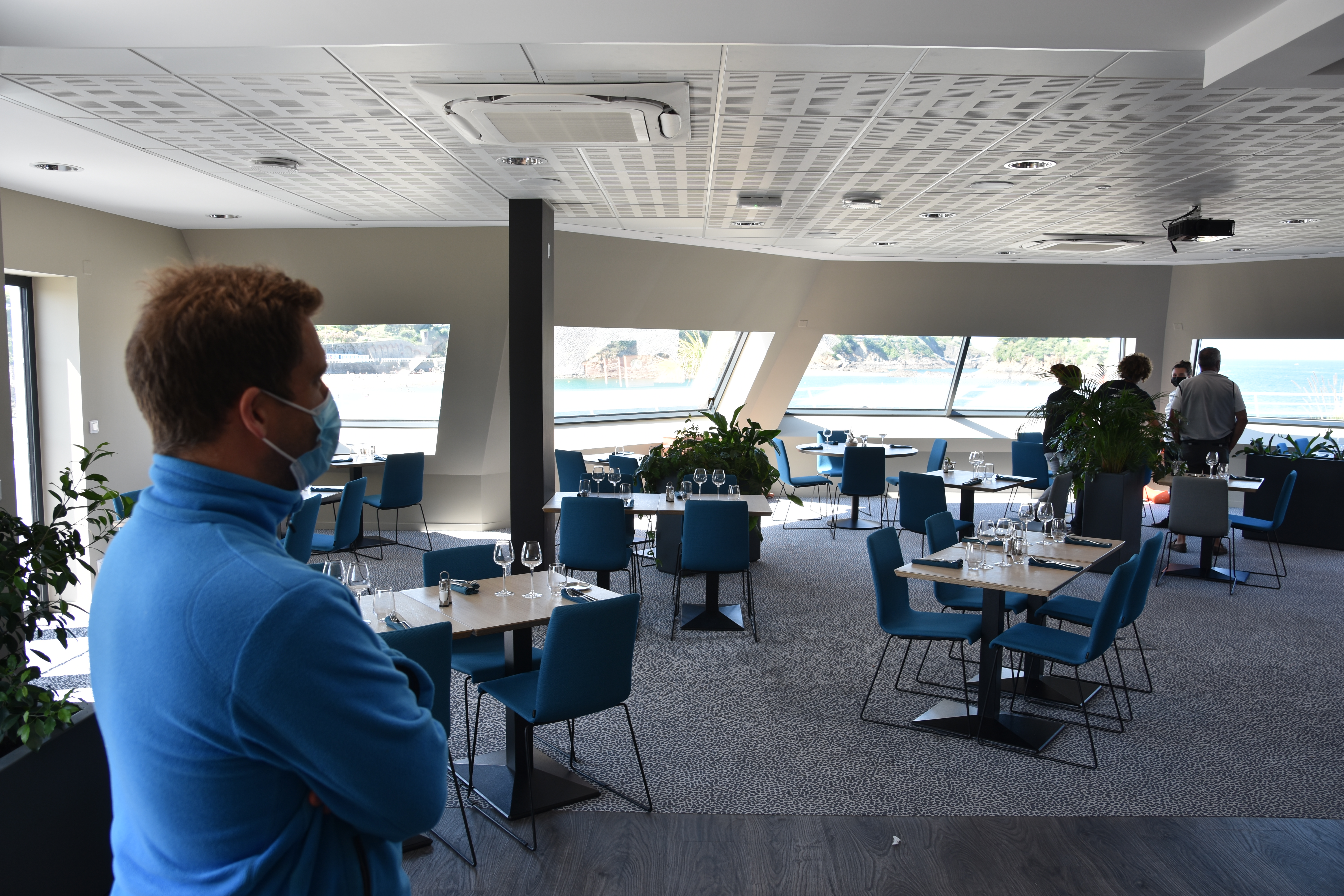 La suite s’effectue à l’étage du bâtiment, empruntons les escaliers pour découvrir le cadre chaleureux du restaurant. Le surnom du lieu est vraiment bien trouvé : Le Catamaran. La forme de la pièce et le vitrage donnent vraiment l’impression d’être dans une cabine de bateau. La vue est panoramique et comme nous nous trouvons au bord de la mer… Forcément, la grande bleue est visible de tous les côtés.