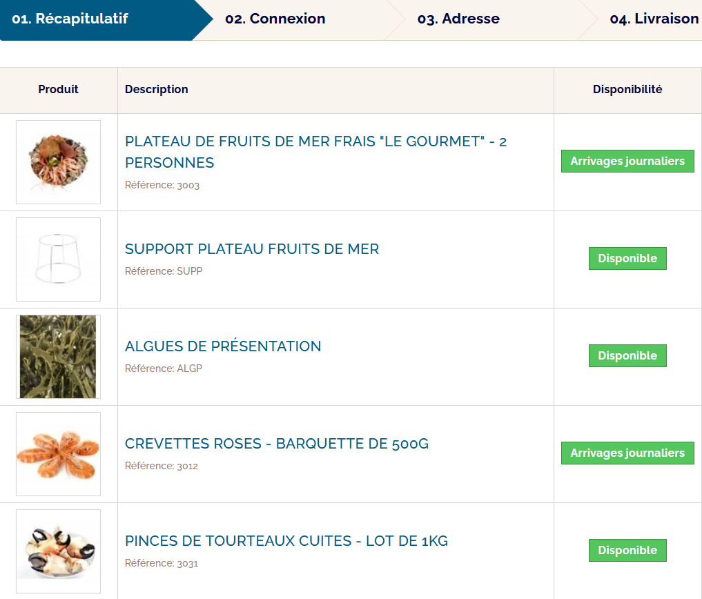 Ce qui vous permet de commander une semaine, un mois avant, sans plus vous soucier de rien. Pour notre commande, nous somme partis sur deux beaux plateaux de fruits de mer, ayant un nombre certain d’invités, mais pas tous amateurs de ce genre de plats. Nous avons tout de même ajouté quelques pinces de tourteau pour étoffer notre futur plateau.