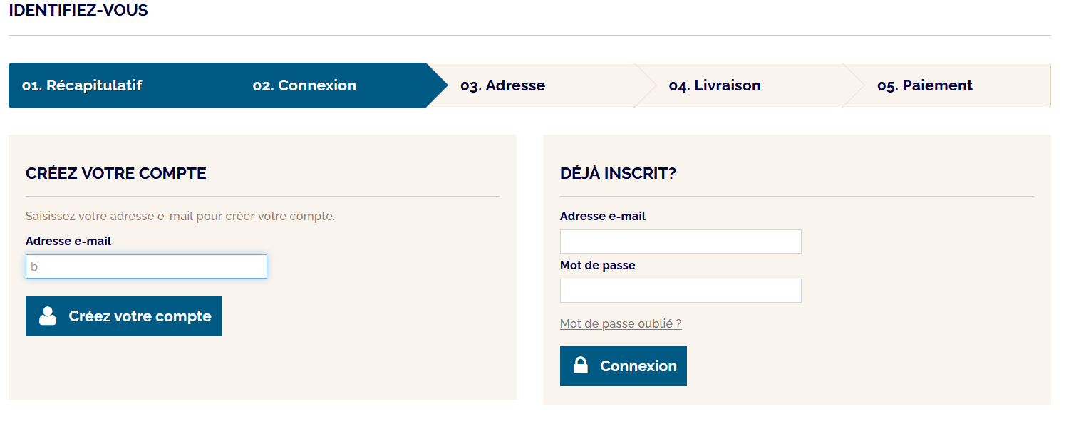 Comme pour toute commande sur un site marchand, il vous faudra créer un compte, valider votre panier, éditer une adresse de livraison et le type de moyen d’expédition. Vous pouvez aussi, si vous habitez non loin du magasin, retirer vos produits en boutique après préparation de votre commande.