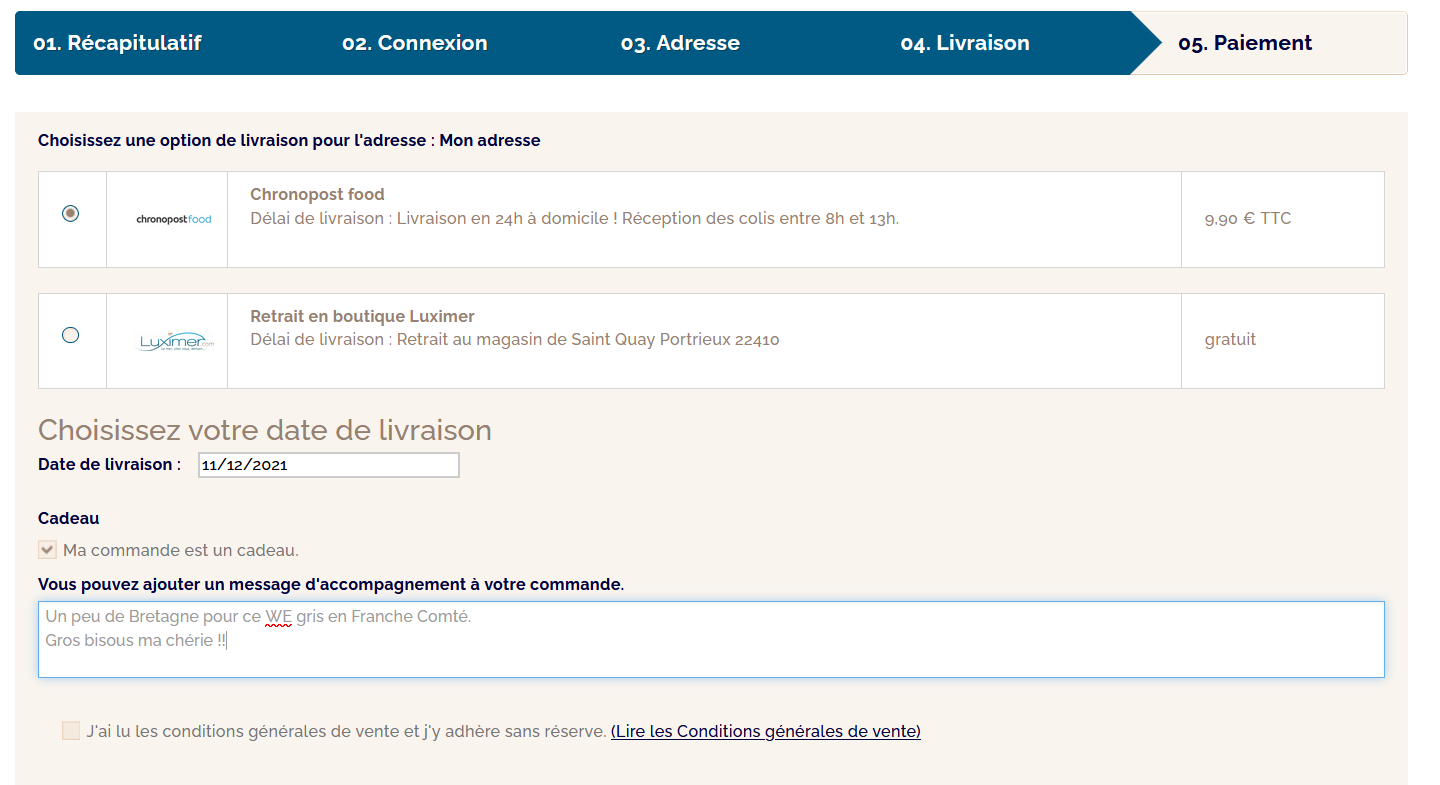 Cette petite visite nous a laissés sur notre faim. Notre périple estival nous impose de poursuivre notre route, alors que ce moment passé à visiter nous ouvrait l’appétit. Ce n’est pas pour autant qu’une idée ne trainait pas dans un coin de notre tête. Une idée toute simple, celle de pousser l’expérience jusqu’au bout et de voir comment se passe une commande des produits bretons par internet quand on habite en Franche Comté… Ne manquait que le bon moment pour faire cela, la bonne occasion. Il nous aura fallu attendre le mois de décembre et l’anniversaire de Sophie, pour mettre en pratique ce petit projet secret.