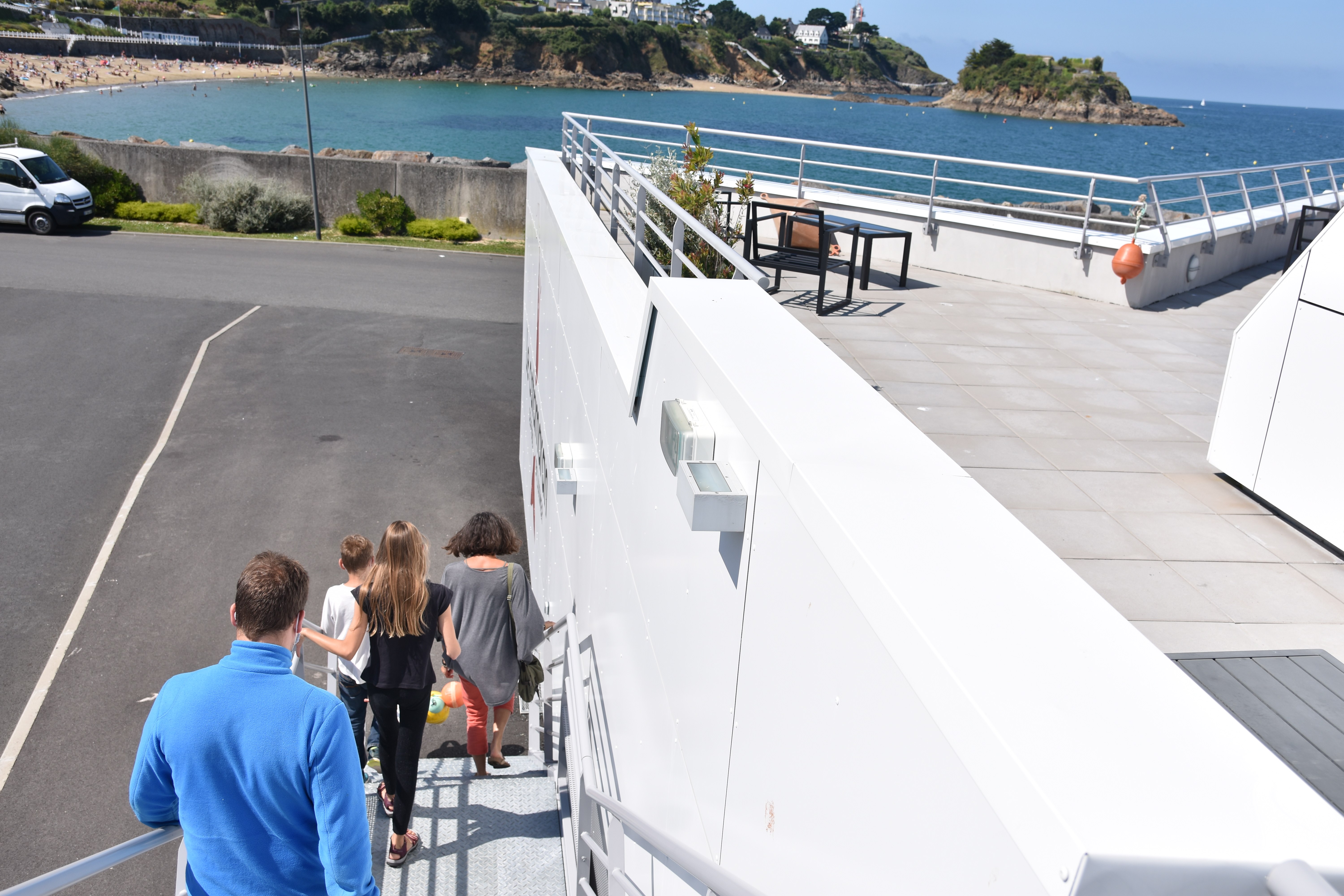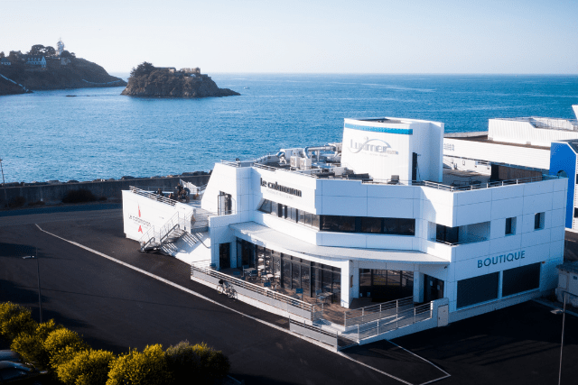 Cette entreprise, c’est Luximer à Saint-Quay-Portrieux dans la baie de Saint Brieux. Basé à côté du port de pêche de Saint Quay, le catamaran est à la fois point de vente, restaurant, zone de préparation et de conditionnement. C’est là, devant les portes de ce grand bâtiment blanc que nous avons rencontré (les enfants, Sophie et moi) Stéphane Le Rouzes, le patron qui envoie du frais… enfin du gros… enfin le patron quoi.