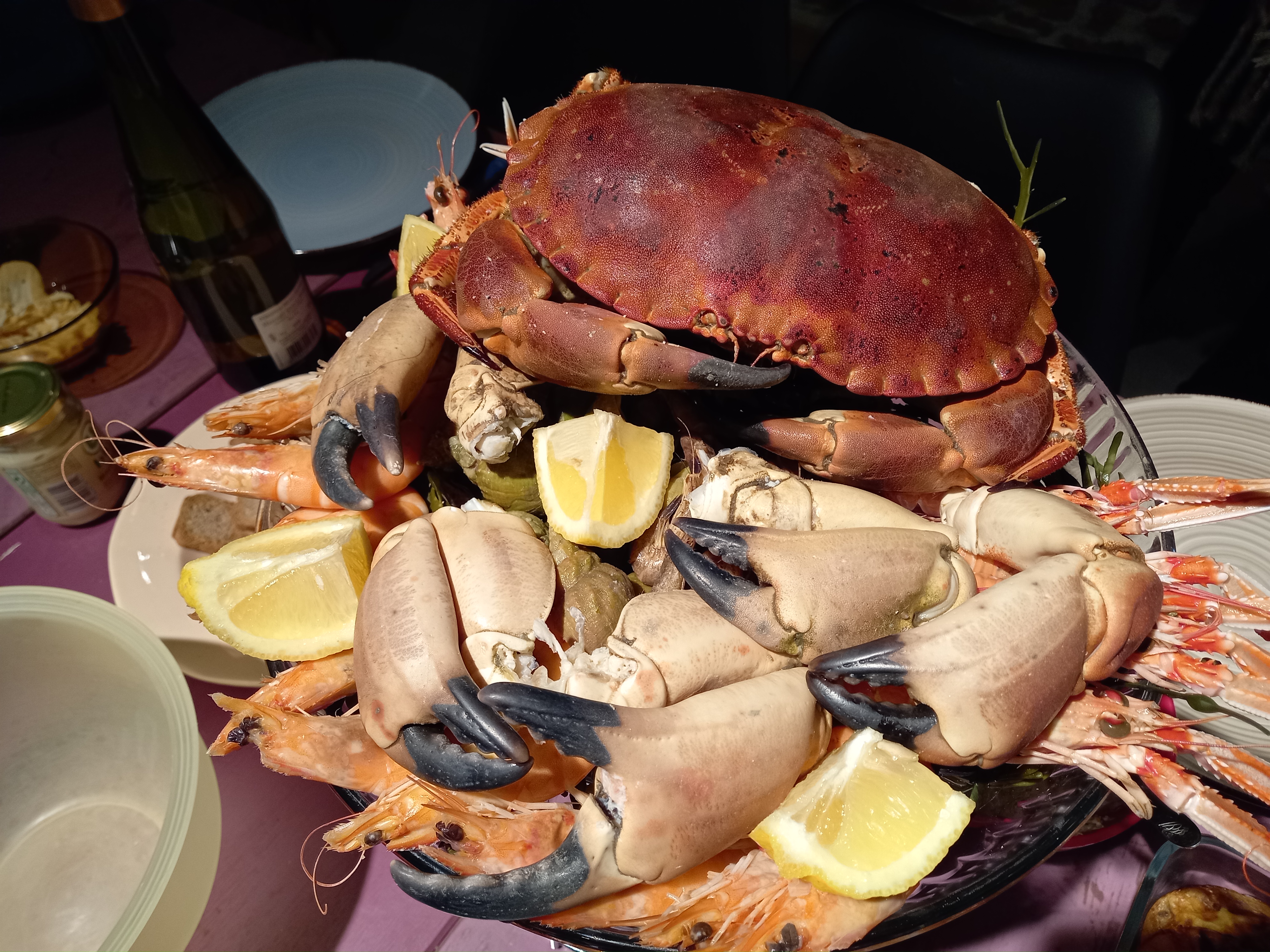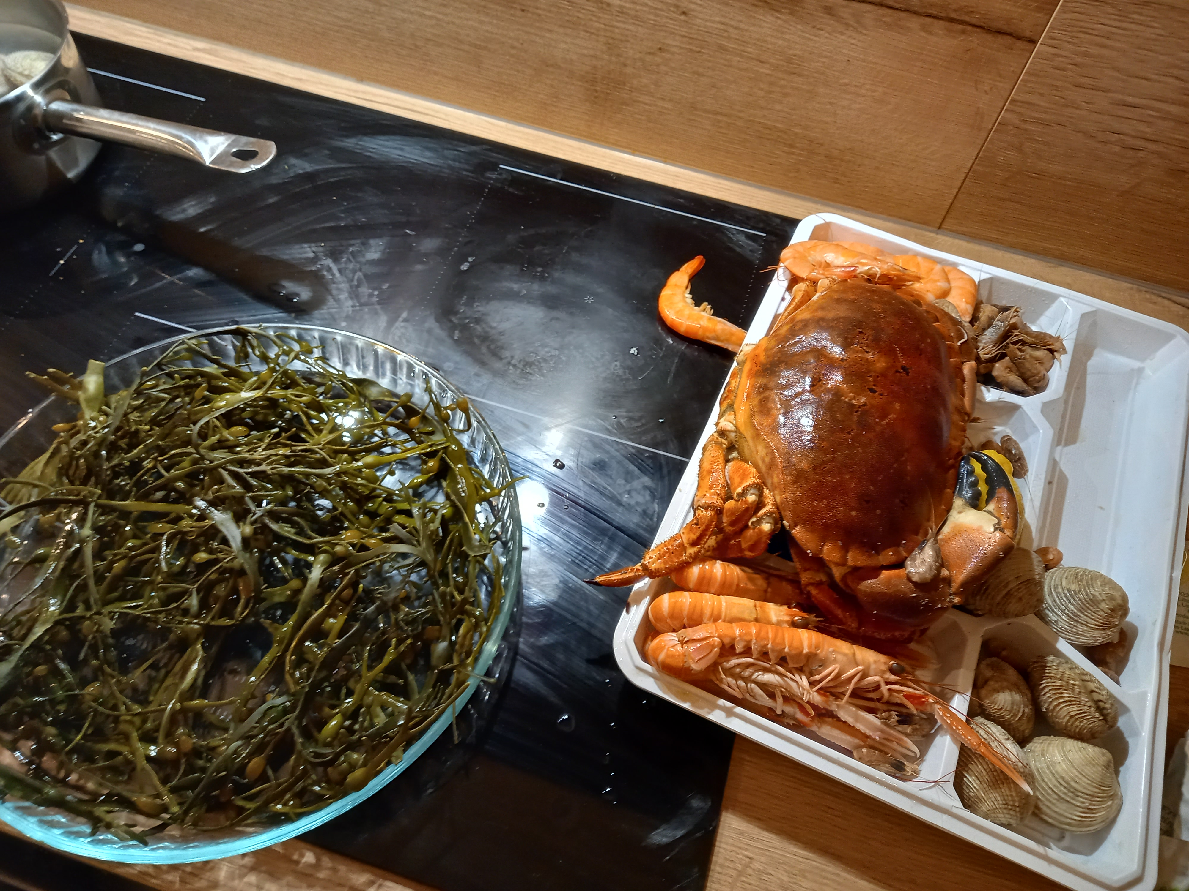 C’était un véritable bon moment convivial. Tous nos invités n’étaient pas de grand amateurs, mais se sont laissés prêter au jeu de la découverte et de la dégustation. L’occasion aussi de rappeler ce qu’était tel ou tel crustacé ou coquillage. Nous avons découvert la cuisson à l’eau de mer qui ajoute une pointe de sel au goût des pinces de tourteaux.