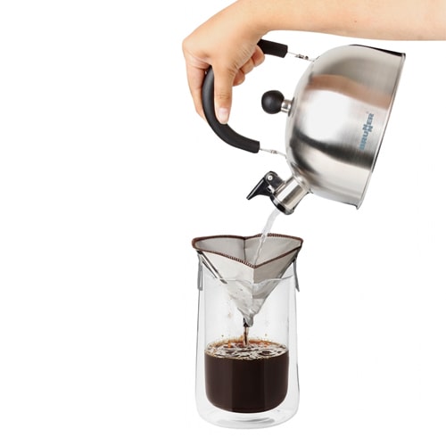 Pour les amoureux du filtre; il existe aussi des formules basiques avec support de filtre à poser sur la tasse ou des chaussettes à thé détournées de leur utilisation. Ces alternatives demandent tout de même de faire chauffer l’eau avant l’utilisation.