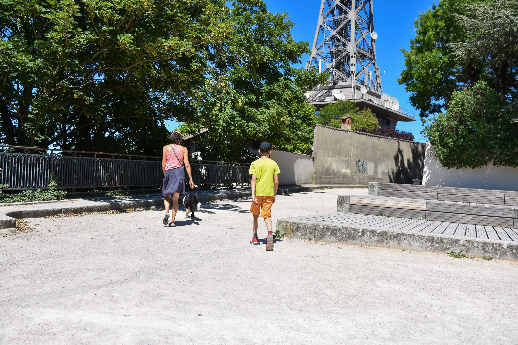 Sur le trajet, Sophie avait lancé une invitation pour retrouver des amis belfortains perdus de vue depuis un moment qui habitent sur Lyon. Ils sont disponibles le samedi, nous déposons Rosanna à son stage et prenons la route du hameau de Chambost-Allières pour visiter la Forêt des expériences, un sentier d’interprétation et une jolie vue sur l’arrière-pays du Beaujolais. C’est à environ une heure de route de Lyon.