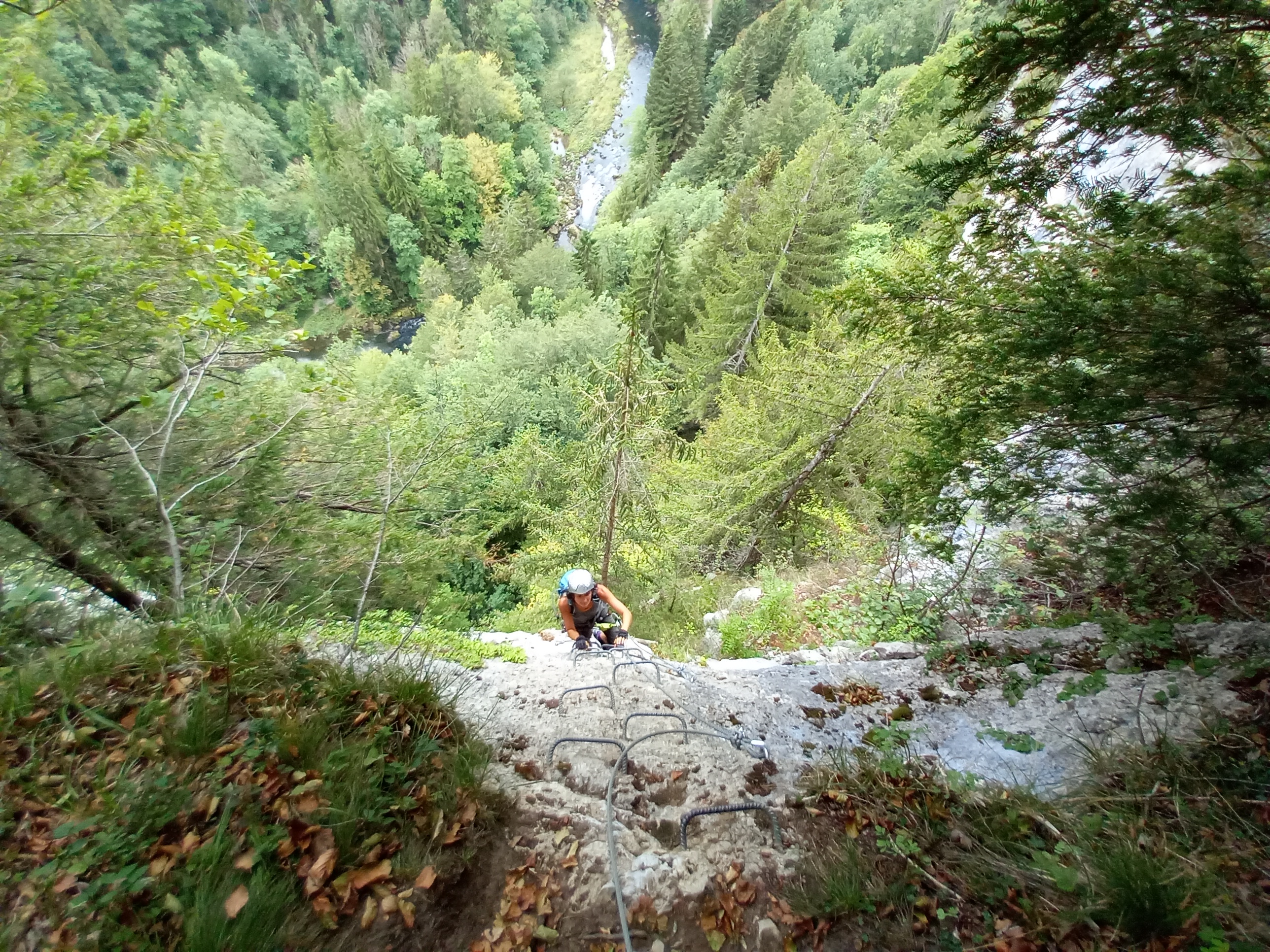 Nous sommes déjà samedi matin, il est temps de rentrer, mais nous décidons tout de même de passer par la via ferrata des Échelles de la mort. Un endroit que nous adorons. Une magnifique via dans un cadre incroyable au bord du Doubs. La difficulté est modérée, mais rien n’est donné tout de même.