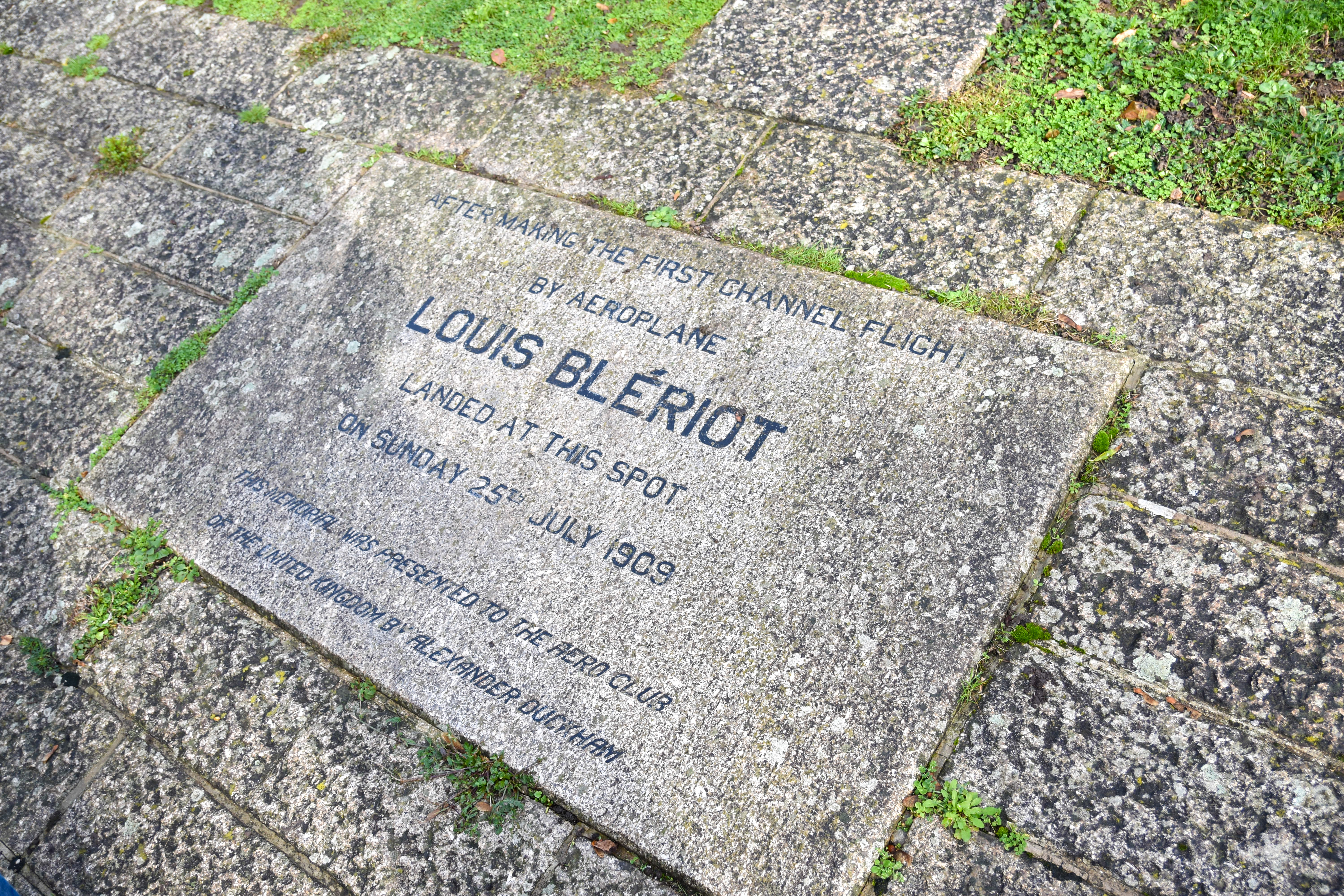 Après une petite phase d’analyse et de compréhension du code de la route anglais et des limitations de vitesse exprimées en Miles/heure (je vous fais très vite un petite article là-dessus) nous voici en chemin avec un premier arrêt sur les lieux d’un moment historique de l’aviation française. L’endroit exact où Louis Blériot a posé (en catastrophe) son avion lors de la première traversée de la Manche le 25 juillet 1909.