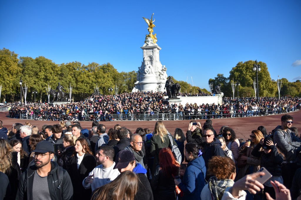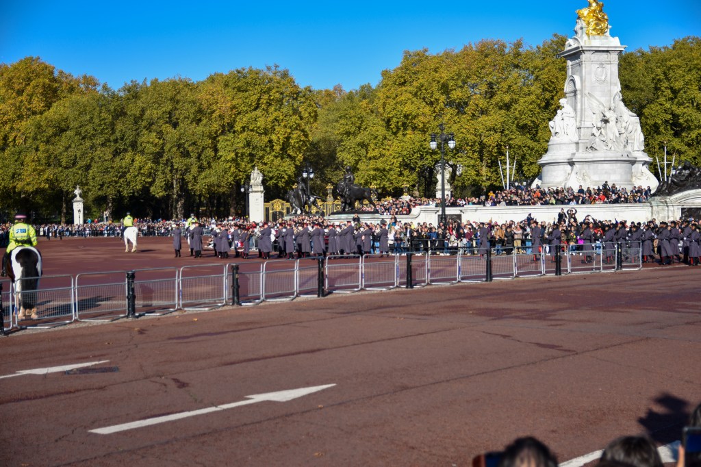 C’est notre dernier jour à Londres, il y a encore tant de chose à voir et à visiter. L’axe de la journée est un peu plus basé sur des ambiances et des quartiers. Nous attaquons par la cérémonie de la relève des gardes devant le Palais de Buckingham. C’est le lieu où loge la famille royale à Londres. La cérémonie de relève des gardes semblent être une véritable attraction à part entière. Les guides que nous avons pu lire nous invitaient tous à venir largement en avance pour assister a cette parade. Ils n’avaient pas vraiment tort. Il faut venir tôt pour voir quelque chose… Nous sommes arrivés pile à 11h00 et n’avons pas vu grand chose.