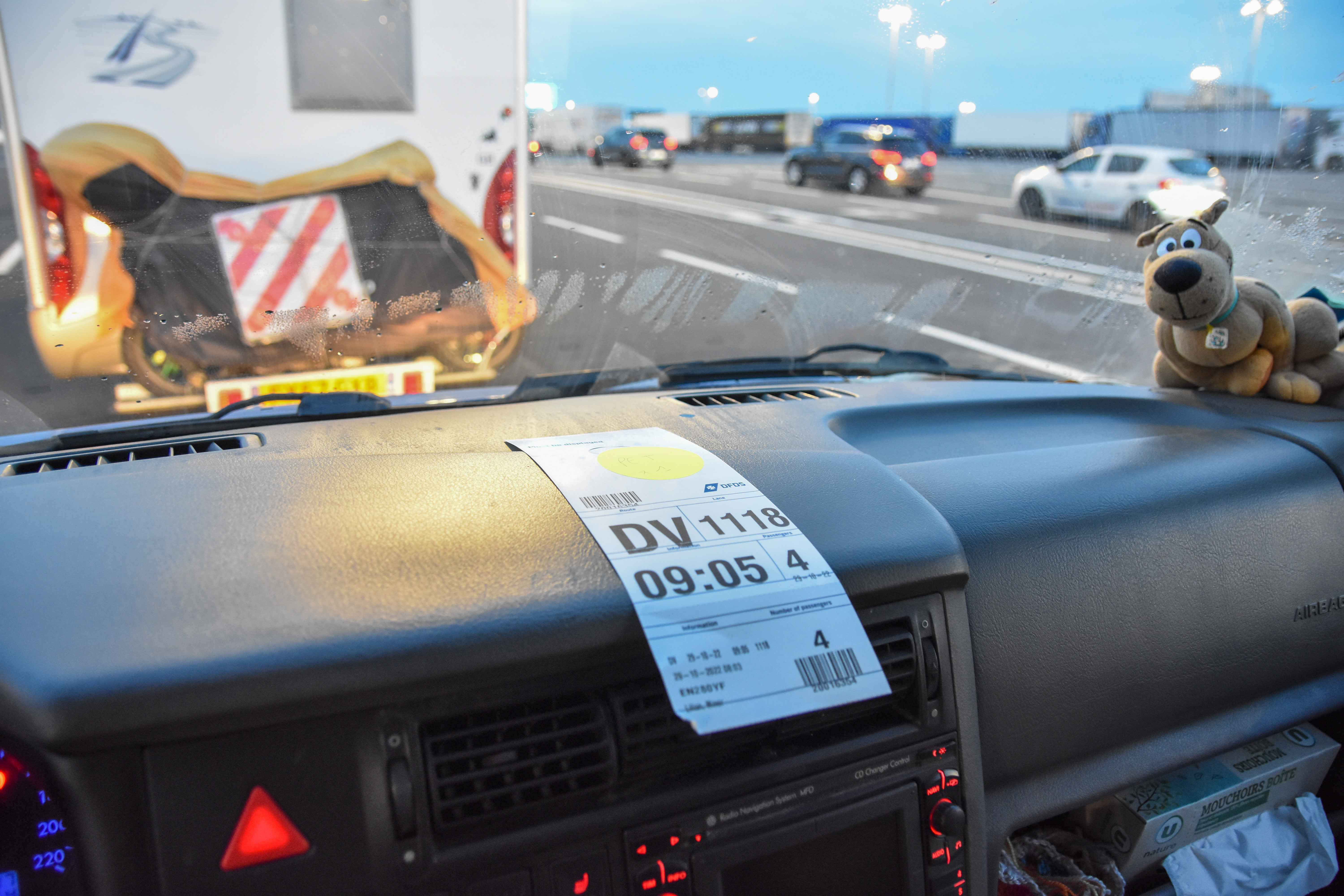 Aller en van en Angleterre impose de passer par le tunnel sous la Manche ou par un ferry. L’argent étant nerf de la guerre, c’est par Calais que nous irons envahir la tribu de joueurs de cornemuse en kilt. Arno n’est pas un camping-car, mais une grosse voiture, il faut faire attention aux informations que nous indiquons au moment de l’inscription de notre véhicule sur le site de la compagnie de ferry. Il y a une différence de prix et de traitement pour les camping-cars. Attention, lorsque vous avez finalisé la partie financière de votre achat, il faudra aussi enregistrer l’ensemble des occupants de la voiture pour les formalités douanières : noms, prénoms, numéros de passeport, date de validité, date d’émission…