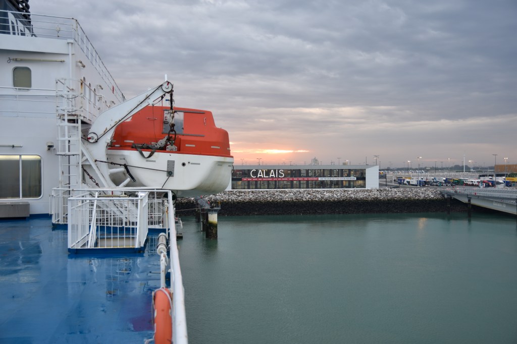 Nous concernant, l’embarquement se faisait vraiment dans le port de Calais, il existe aussi un quai d’embarquement DFPS à Dunkerque. Rien de plus simple pour trouver le bon endroit. En arrivant de l’A16 ou de l’A26 prendre direction de l’embarquement par la A216 puis la N216. La route s’élargit pour proposer toute une série de voies de circulation, il s’agit d’un premier tri entre fret et VL. Puis plusieurs lignes apparaissent avec des noms d’armateurs comme P&G, Irish Ferries ou DFPS… il vous suffit de suivre la bonne file et d’arriver au guichet type autoroute correspondant aux couleurs de votre transporteur.