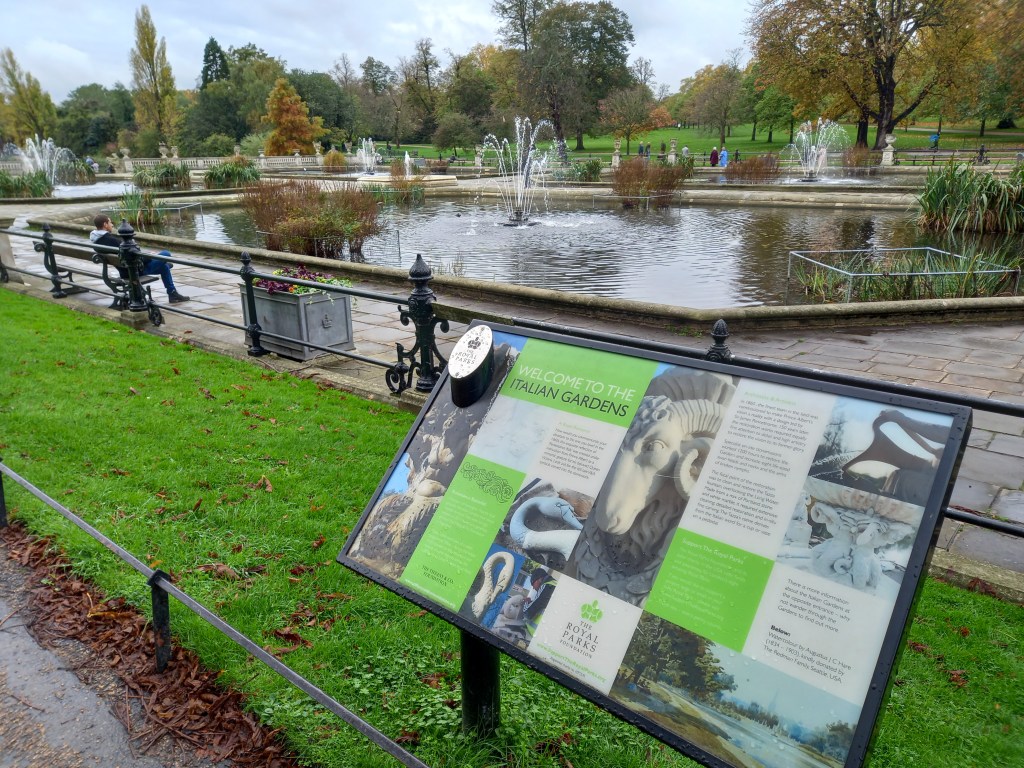 De mon côté, je reste avec Sixa et me dirige vers le Kensington Garden, un grand parc avec le palais de Kensington et Diana Memorial Playground, en hommage à la princesse de Galles. Ce parc urbain est tres vaste. Il y a une rivière en son centre et un passage voiture interdit aux poids lourds. Nous ferons presque 4 km de balade avec Sixa.
