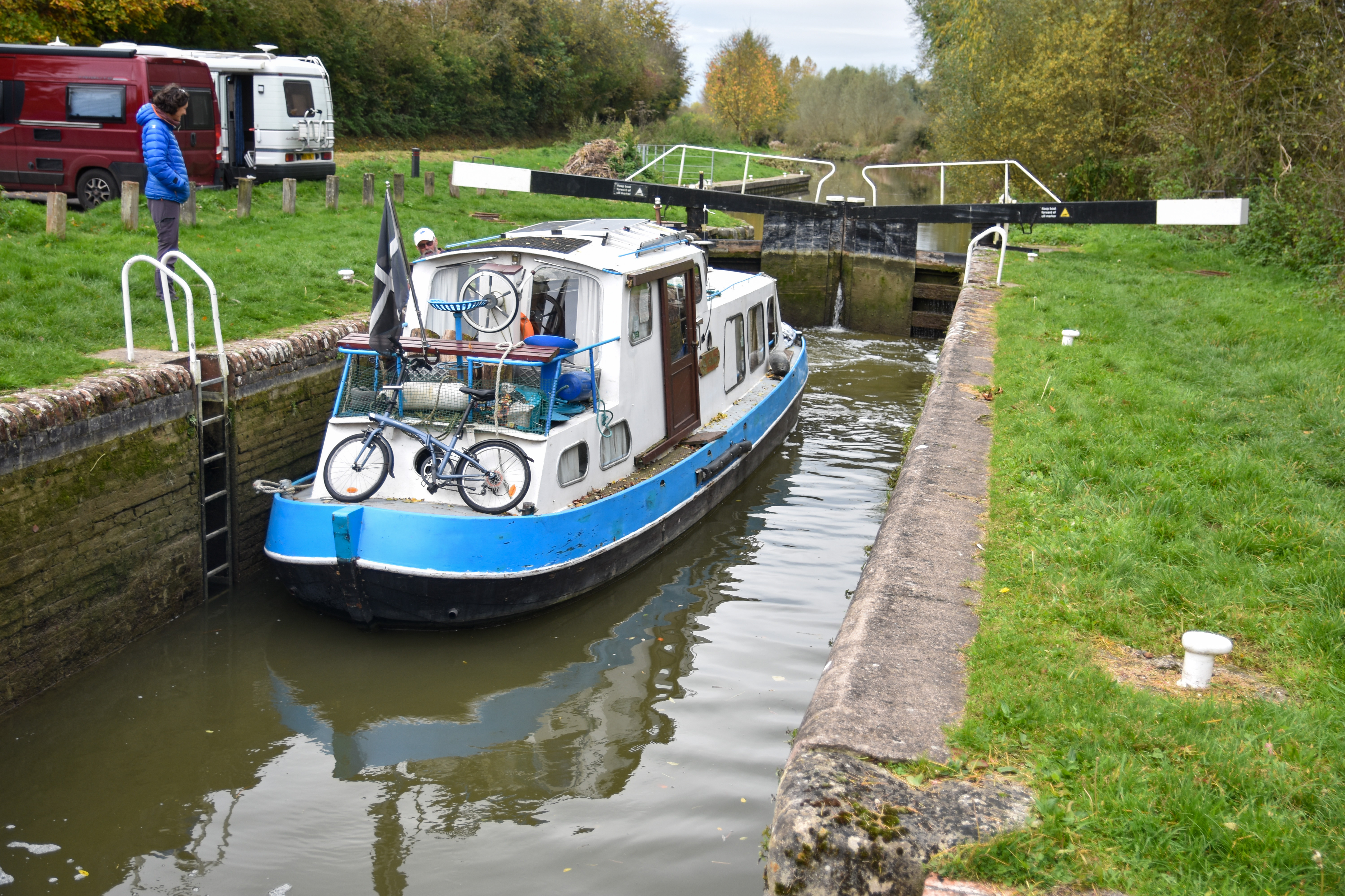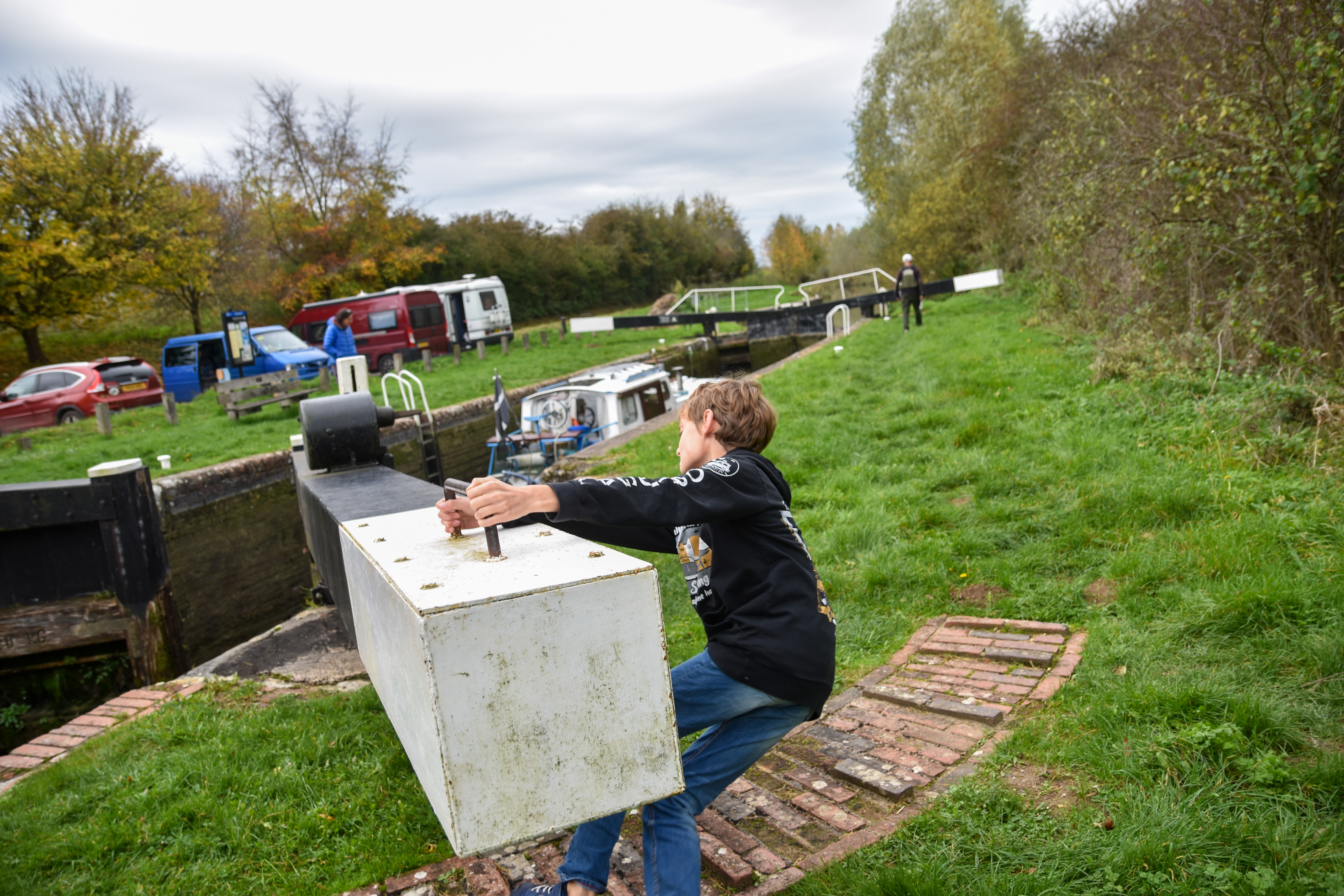 Un petit espace proche de la ville au bord d’un canal pourrait être le cadre de notre spotnight, nous y allons pour vérifier cela durant l’après-midi et là, surprise, une péniche passe l’écluse, nous mettons la main à la pâte pour aider au franchissement. L’ensemble est entièrement manuel. Il y a de quoi faire.