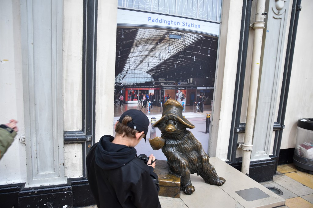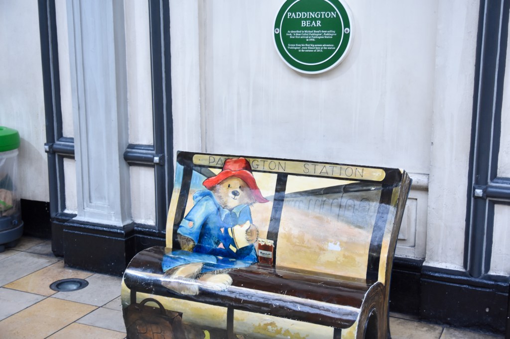 La première est un des lieux de tournage du film Paddington avec un petit ourson venu d’une contrée lointaine. Le nom de la gare lui a été attribué par la famille d’accueil en voyant le panneau sur le front de l’entrée de la gare. Et bien figurez-vous que nous ne sommes pas les seuls à venir dans cette gare pour cette raison. Il y a même un banc et une stèle à l’effigie du petit ourson.