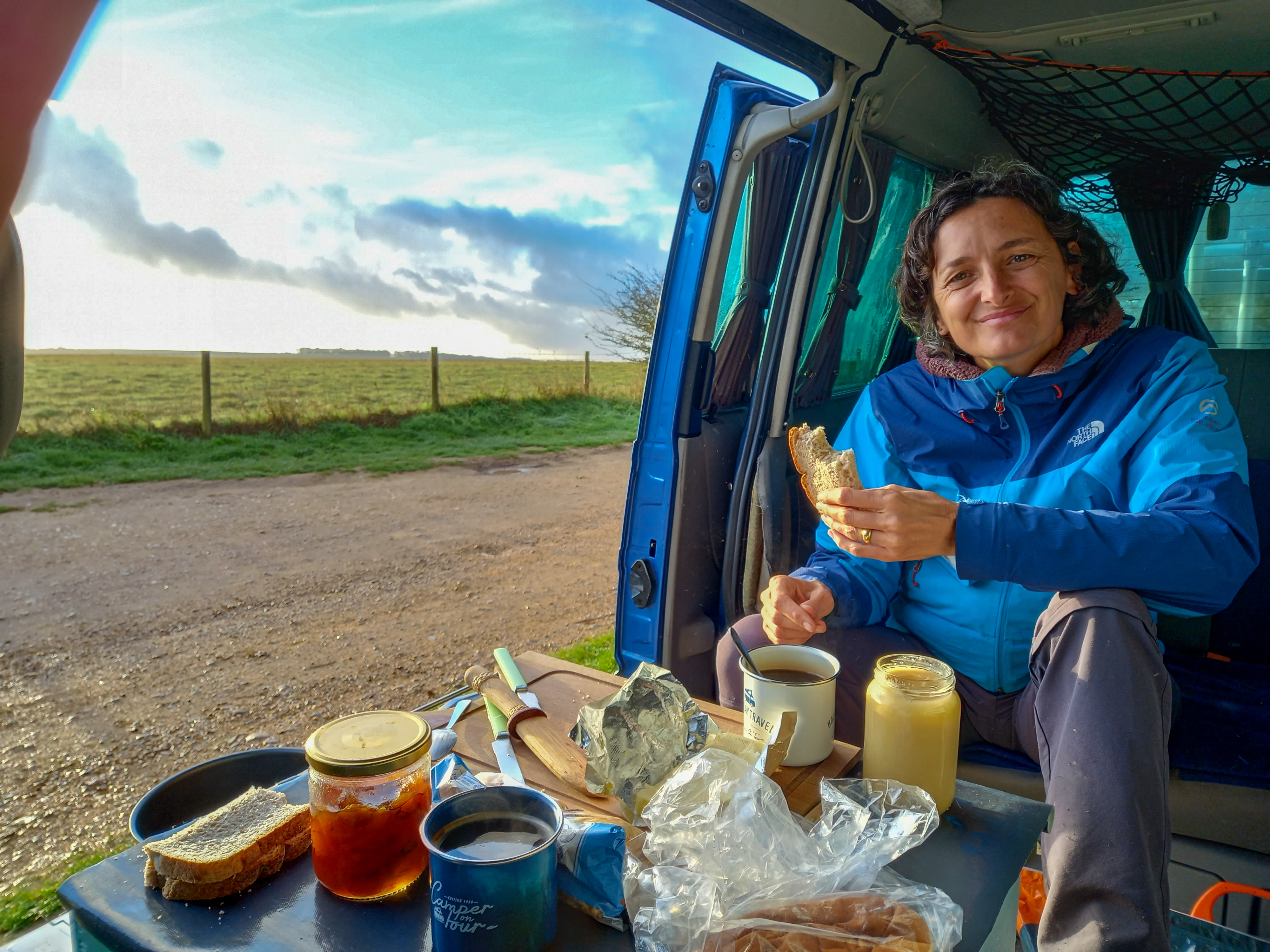 Sophie suit un cursus de formation pour améliorer son anglais depuis la rentrée. Elle s’est dégagé du temps pour cela et consacre plusieurs heures par jour connectée à des cours à distance. N’ayant pas d’autre égal, pour l’apprentissage, que l’immersion, nous avons décidé de l’accompagner de l’autre côté de la Manche, d’y passer une semaine en famille et en van… et de la laisser sur place pour continuer sa route, son apprentissage et sa formation.