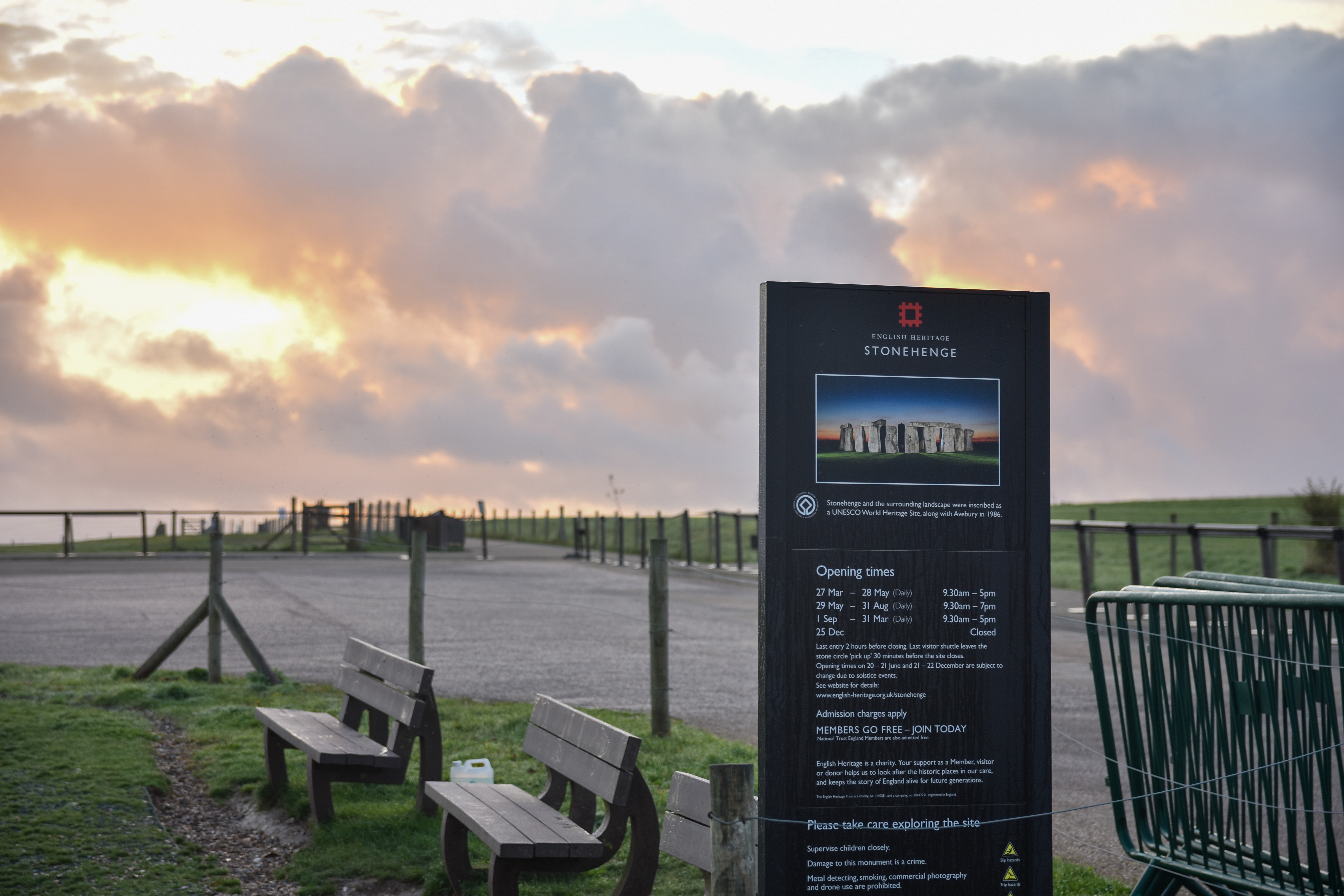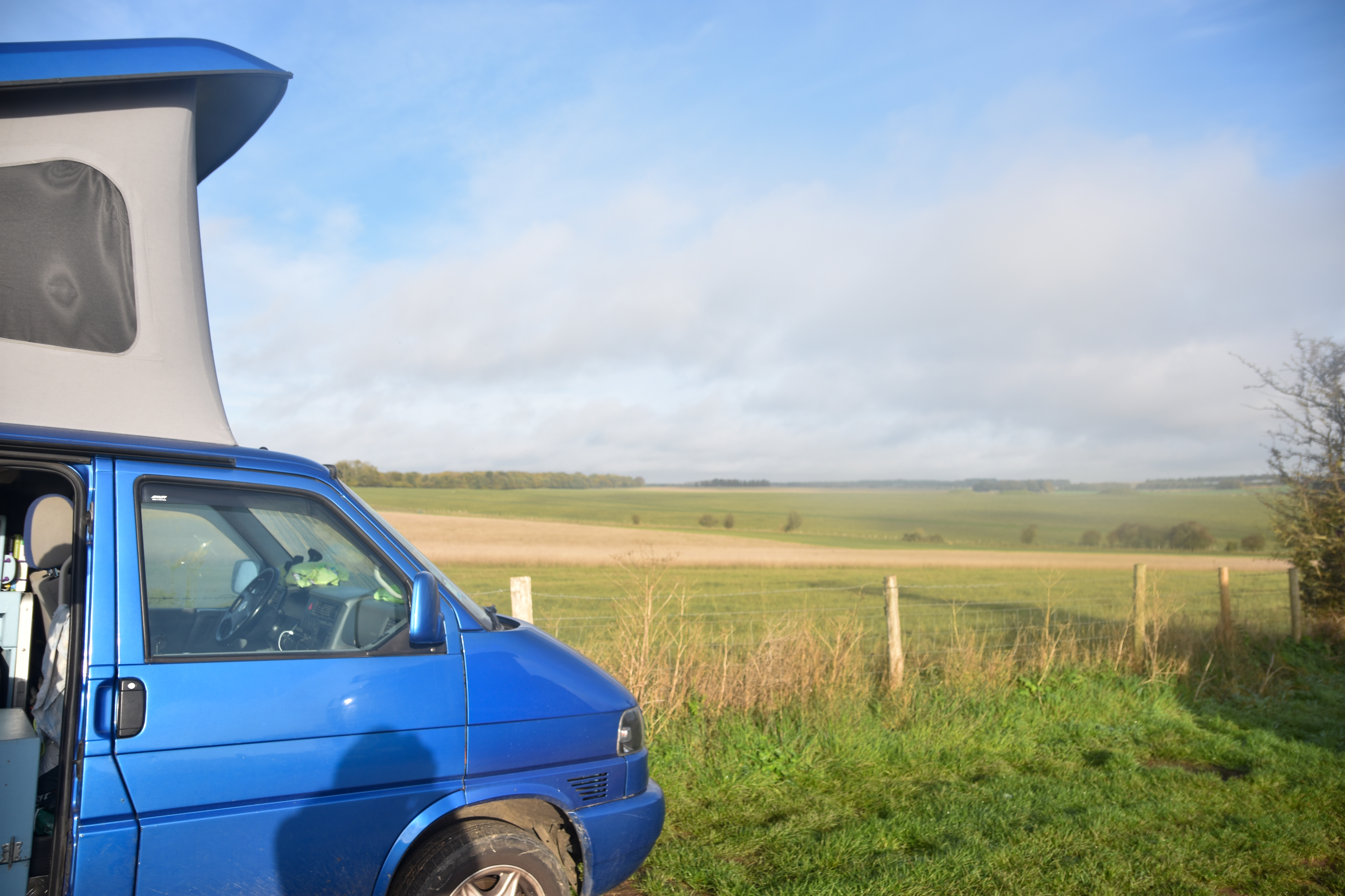 Nous avons volontairement choisi de passer la nuit à deux pas du célébre Stonehenge pour y être au levé du soleil avant les touristes. Sur le net, nous trouvons plein de conseils pour stationner au bord d’un champ pour voir l’édifice sans avoir à payer le circuit touristique. Nous ne nous attendions pas à être juste devant.