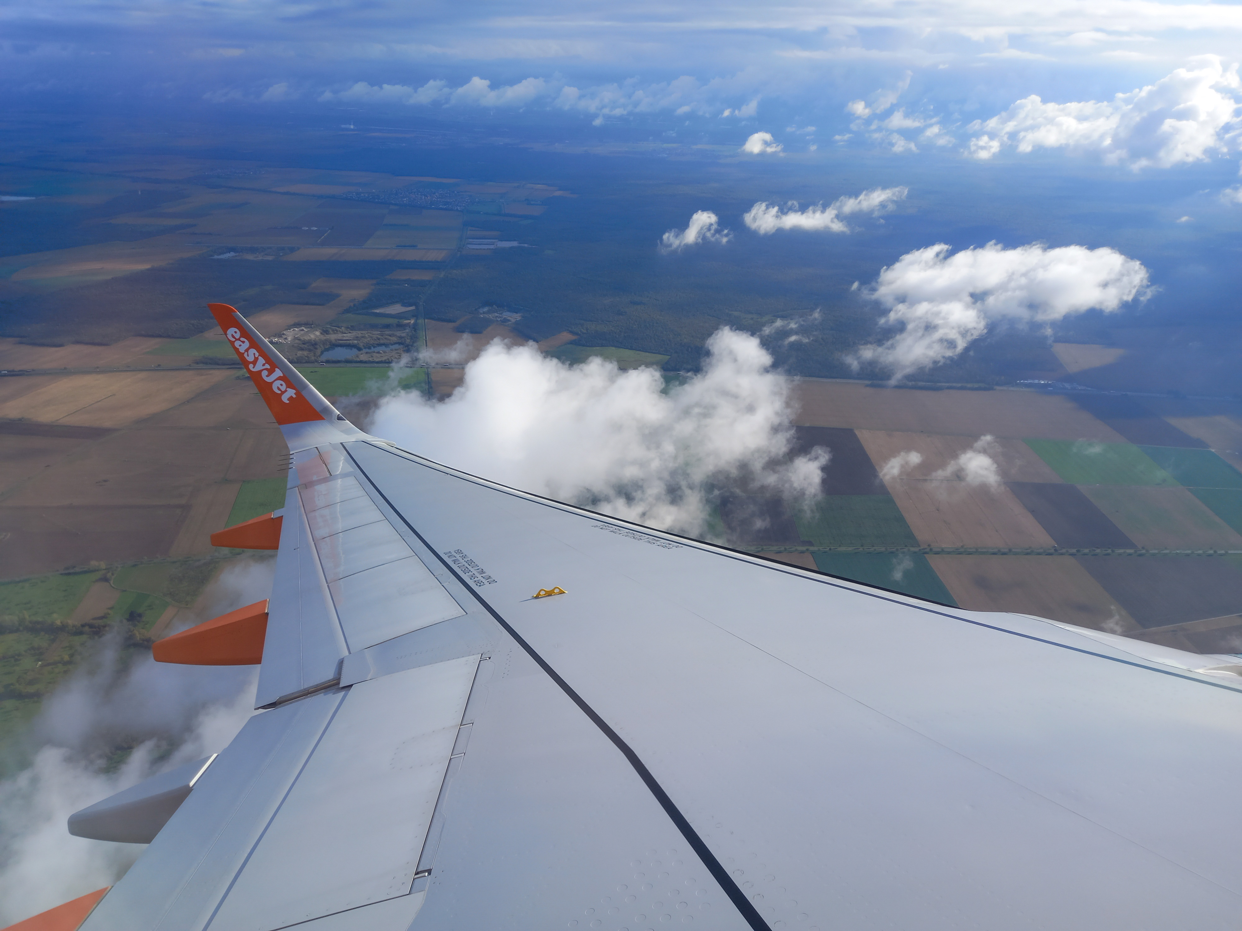 Nous suivons le vol sur l’application EasyJet pour voir notre position. La traversée de la Manche se fait en quelques minutes. Nous survolons Paris et entamons une légère descente. En regardant par la fenêtre nous passons au dessus des Vosges du Sud et reconnaissons une partie de notre Haute-Saône.