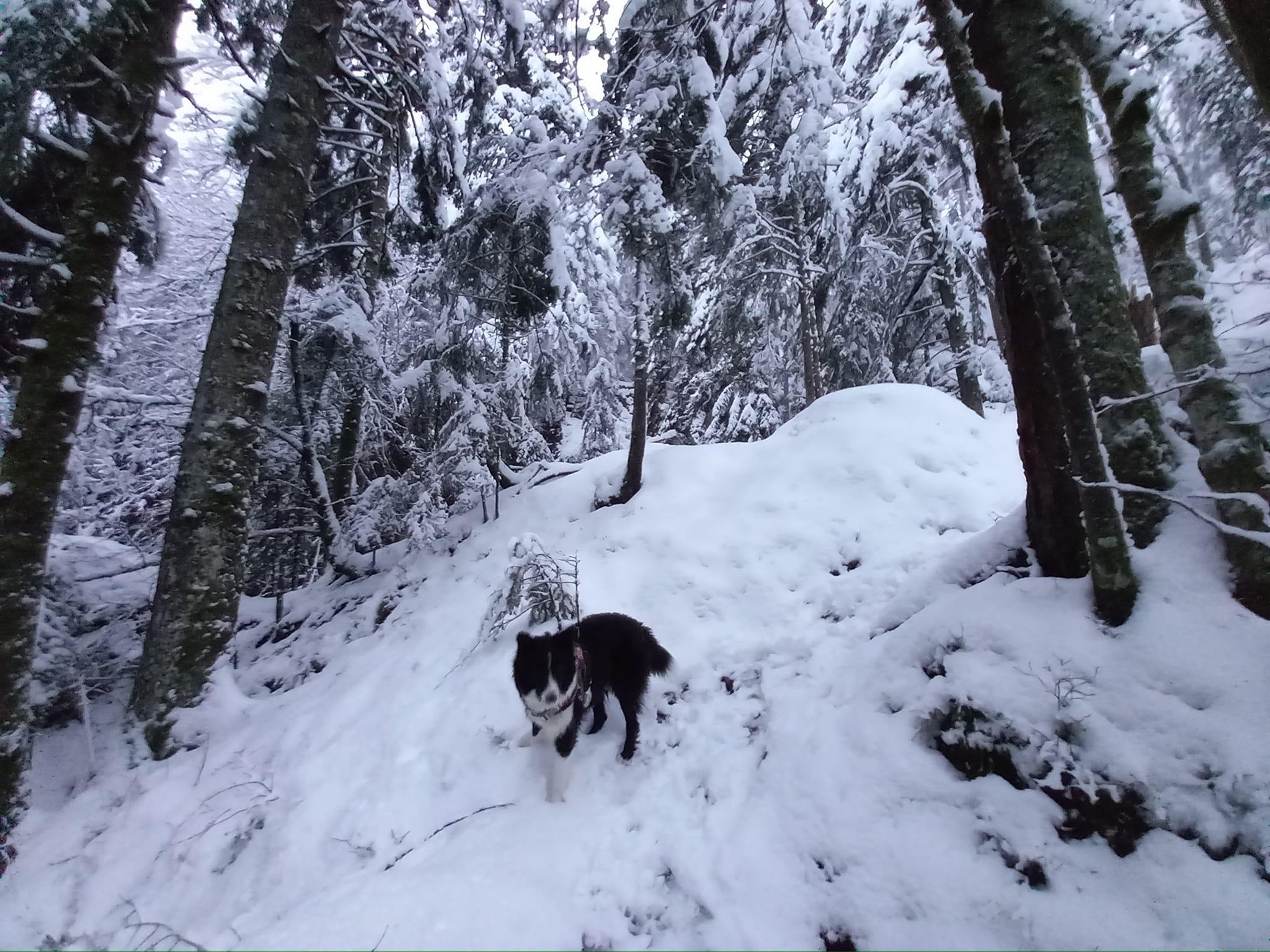 Durant sa phase « petite enfance », à la maison, nous nous efforcions de la sortir toutes les deux heures pour faire ses besoins et éviter ainsi des accidents en intérieur (il n’y a eu que deux accidents à la maison en tout et pour tout). Nous avions même mis un roulement en place où je me couchais vers 2 ou 3 heures du matin et Sophie se levait vers 5 ou 6 heures du matin pour permettre ce roulement. Lors de notre premier vrai WE de vadrouille avec elle, nous étions prêts à poursuivre notre petit roulement, quand d’un coup d’un seul… vers 22h00, mademoiselle se dirige vers son panier, se pose en mode « husky roulé dans la neige » et s’endort jusqu’à 7h00 le lendemain. Pas d’accident, pas de problème. Ce fut une grosse claque pour nous, car oui, c’était maintenant possible de passer une nuit complète sans se réveiller.