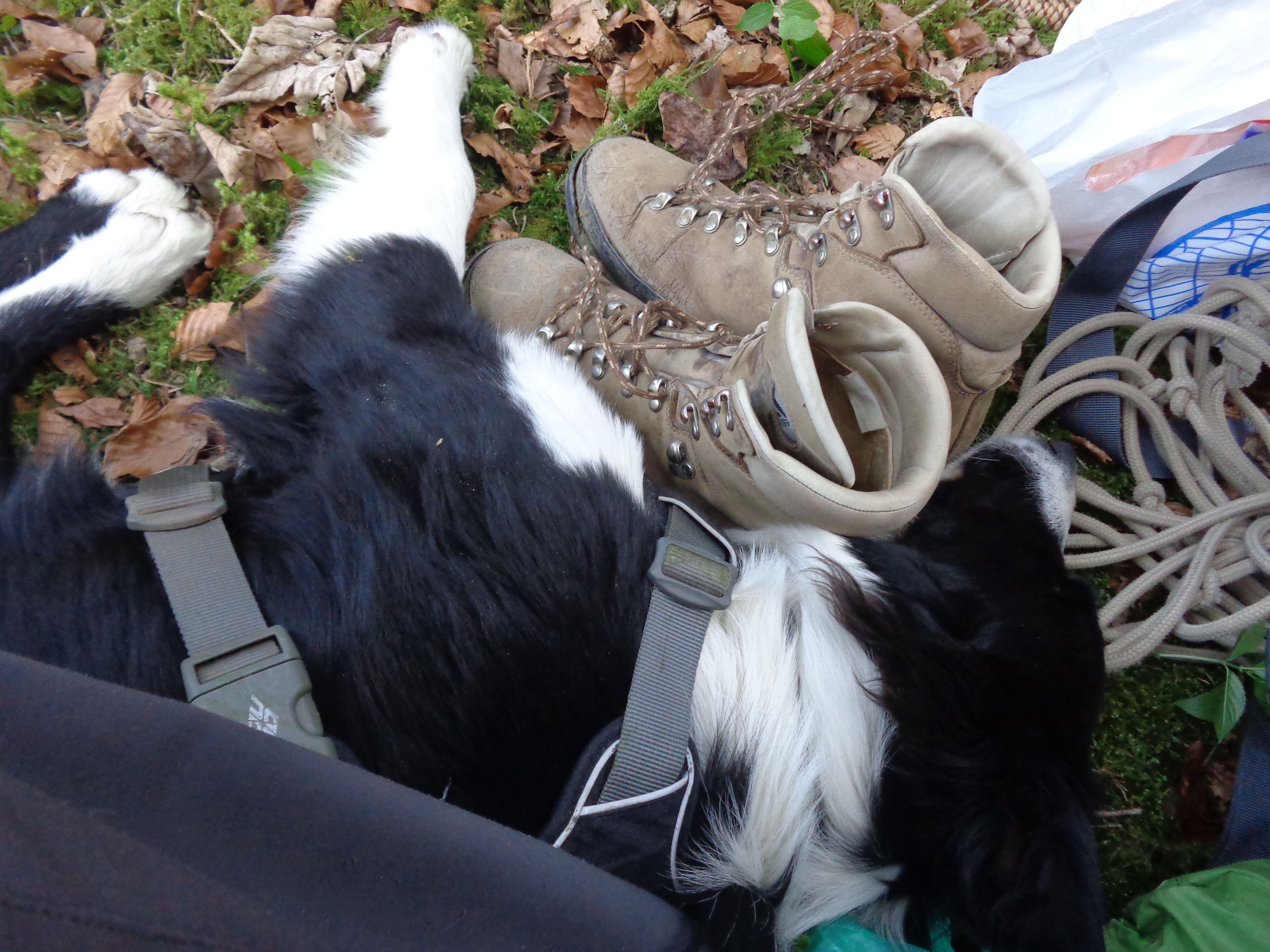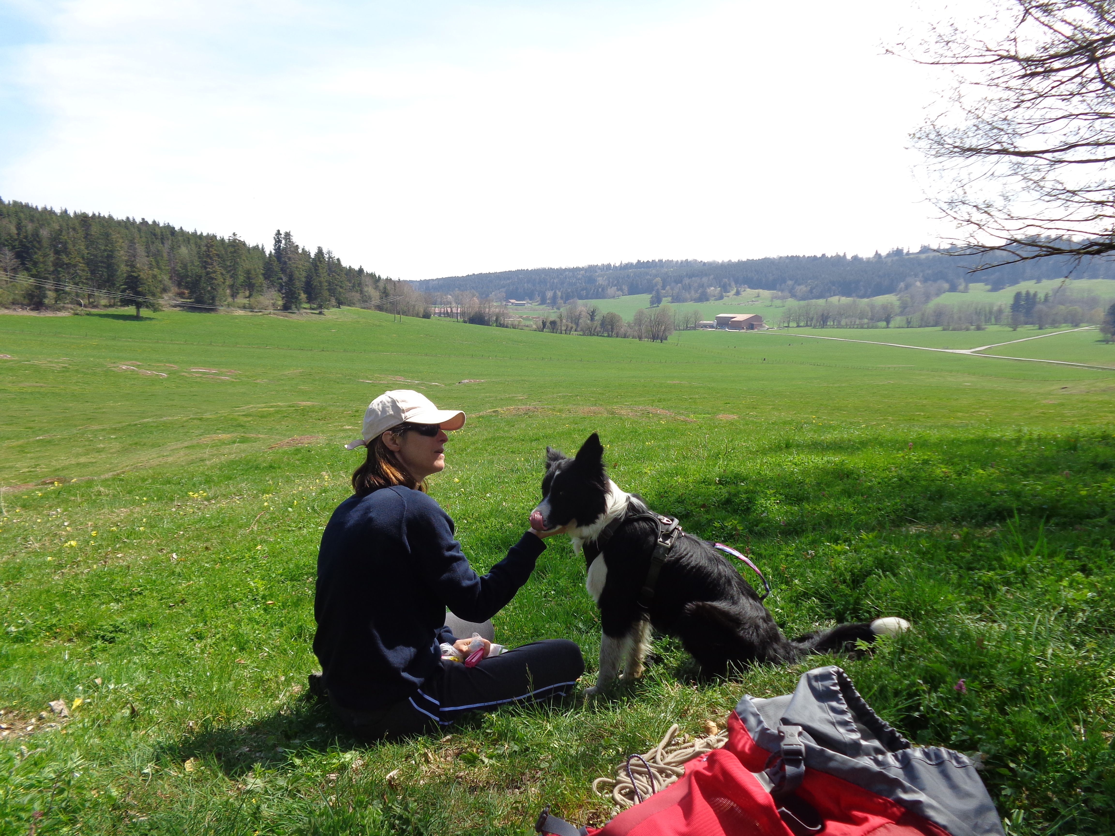 Durant un trek de 3 jours dans le Haut Doubs (à lire ICI) Sophie avait dans son package le nécessaire en aliments. Nous nous étions alors dit qu’une petite sacoche portée par le chien serait une bonne solution. Nous regarderons pour affiner cette solution pour notre prochaine aventure à pied.