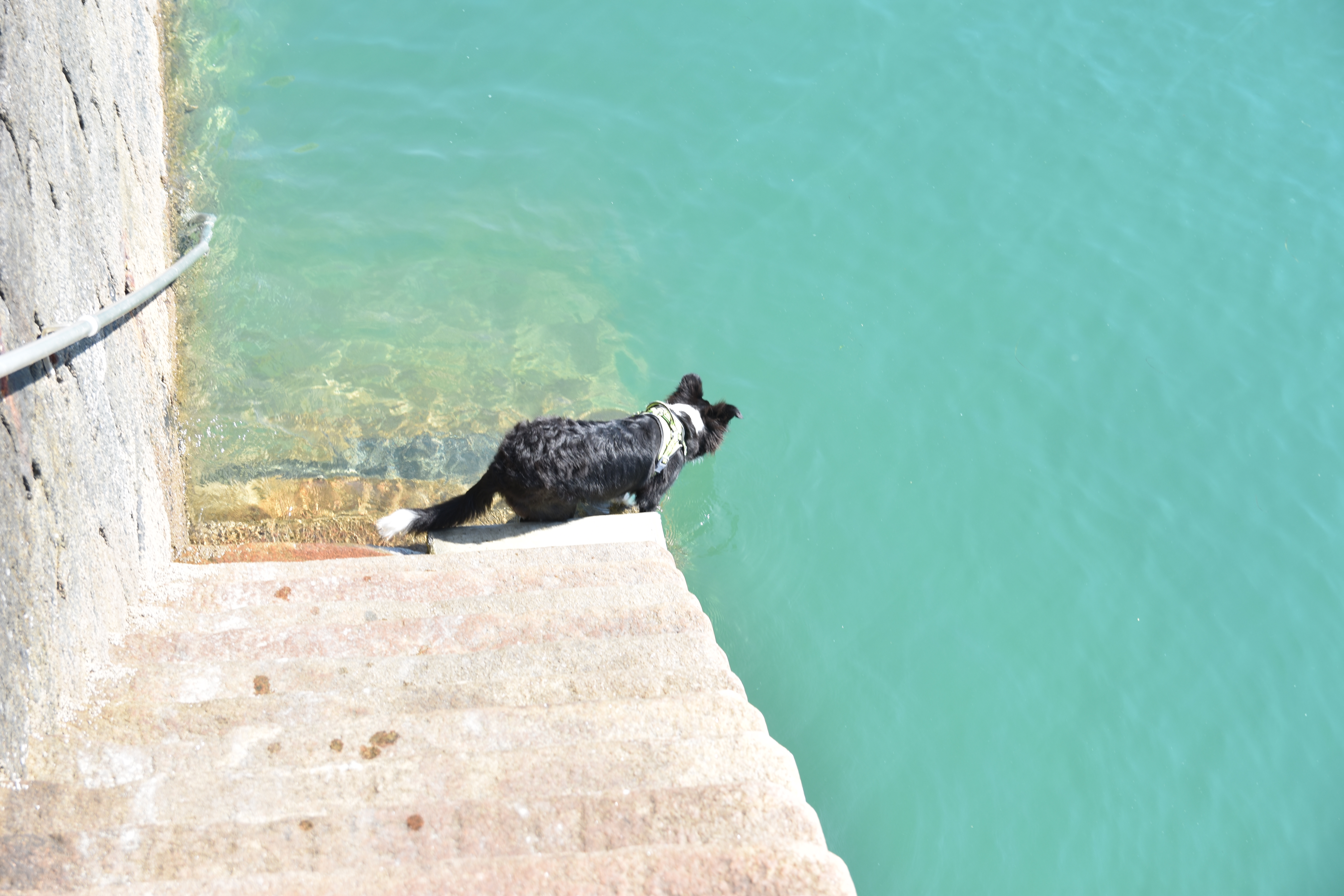 Durant notre traversée de la Manche en ferry, les chiens n’étaient pas admis sur le pont du bateau. Sixa est donc restée 1h40 dans la voiture, seule. Dans les Alpes, il nous est arrivé de la laisser jusqu’à 2h00 durant un parcours de Via Ferrata. Cela ne pose pas de problème si ce temps de solitude est compensé avant ou après par des phases ludiques ou de dépense. Bien évidemment, nous préférons l’avoir avec nous en pleine nature ou à nos pieds au restaurant.