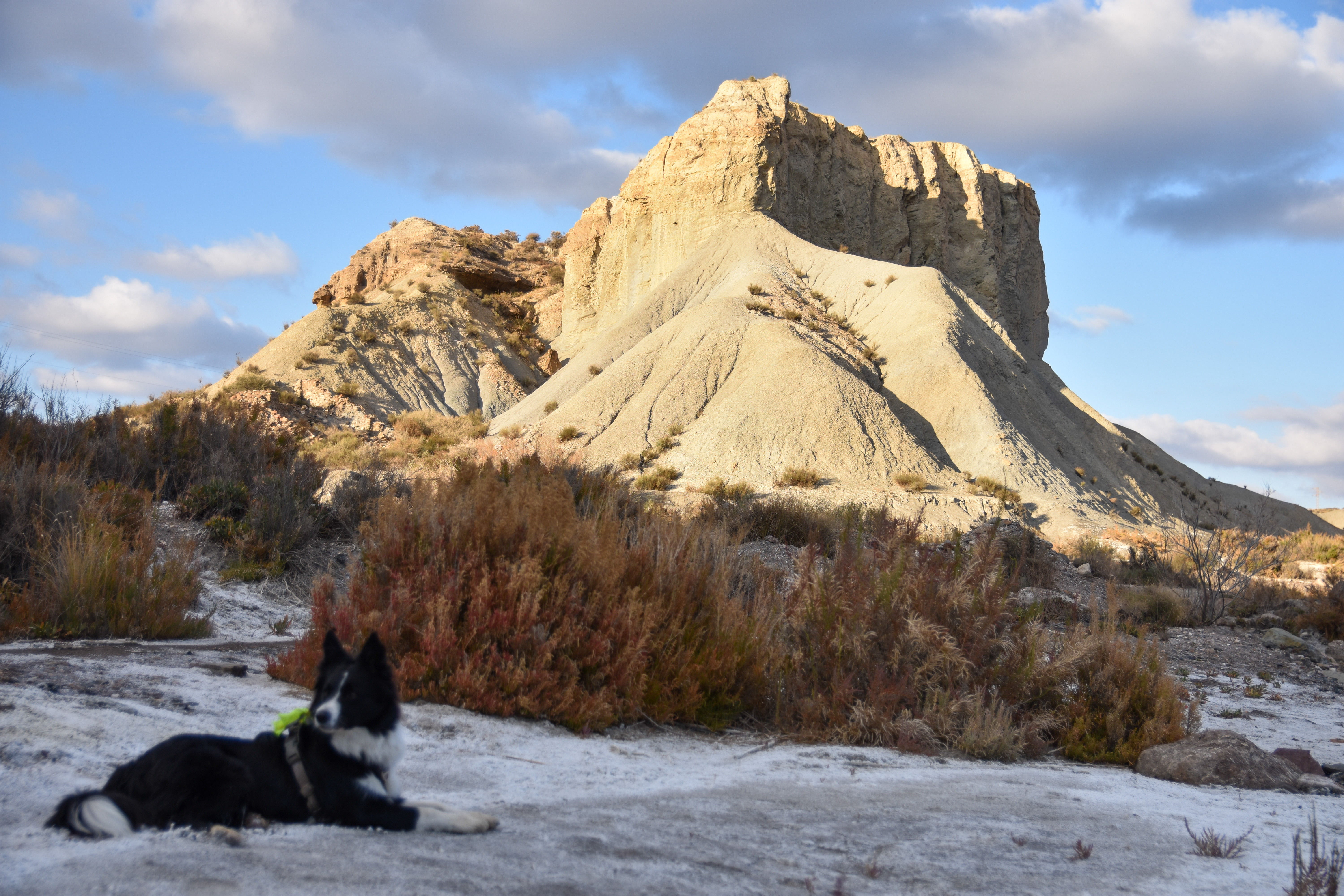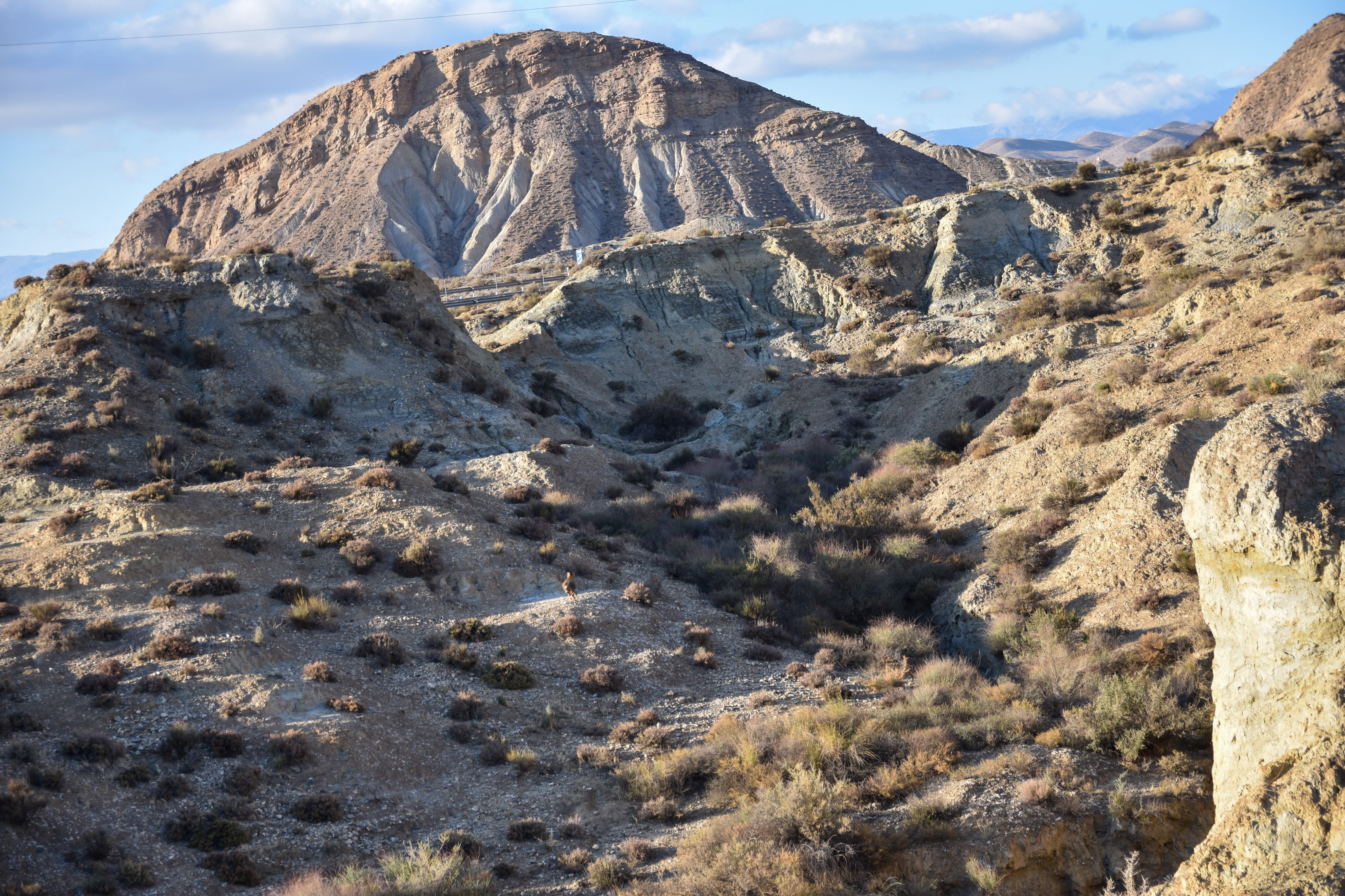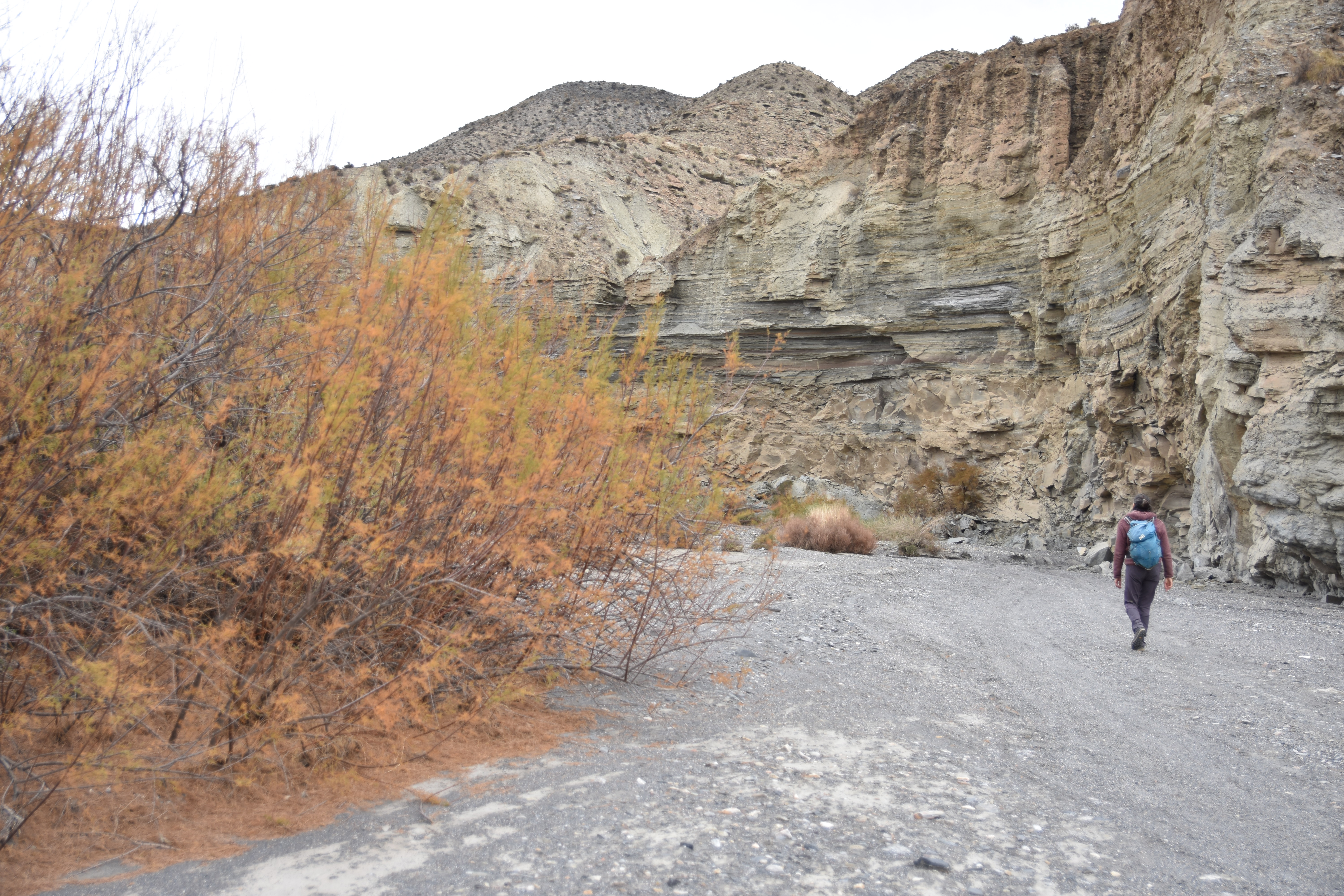Gros saut de puce sur la carte, nous nous retrouvons aux portes du massif de la Sierra Nevada à profiter du soleil dans le désert de Tabernas pour deux jours. Durant l’été à l’autre bout du pays nous avions fait le tour du désert de Bardenas dans lequel il était difficile de se promener en dehors de la route officielle et où les 40 degrés ambiants ne donnaient pas franchement envie de déambuler; alors là, nous voulions en profiter.