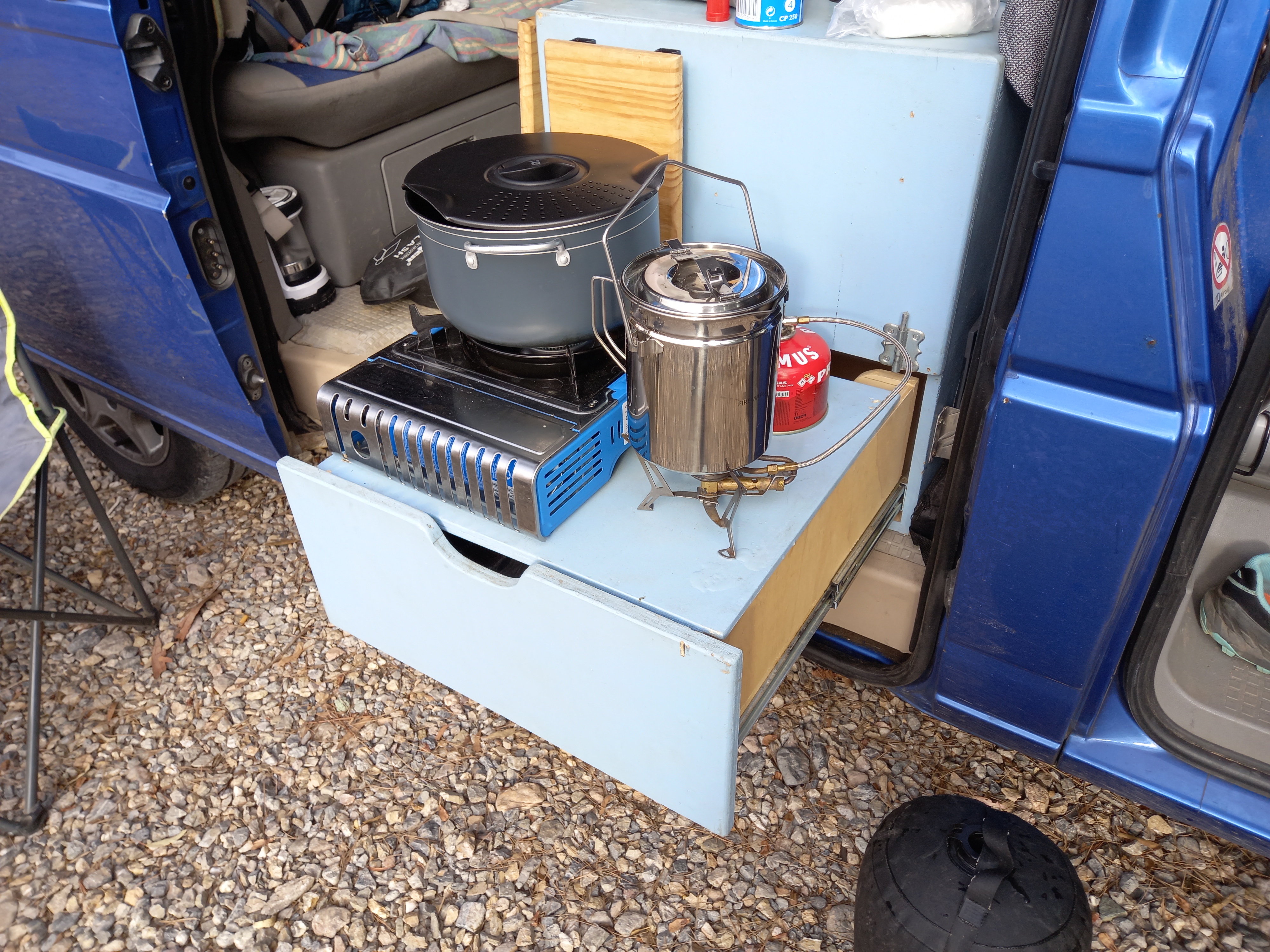 Nouvelle nuit fraiche, il faudra allumer le chauffage stationnaire pour apporter un peu de chaleur au petit matin. La nature nous rappelle également quelques lois de la physique. Tout corps mouillé laissé en suspend à des températures proches de zéro devient solide… et ne sèche pas plus vite, au contraire.