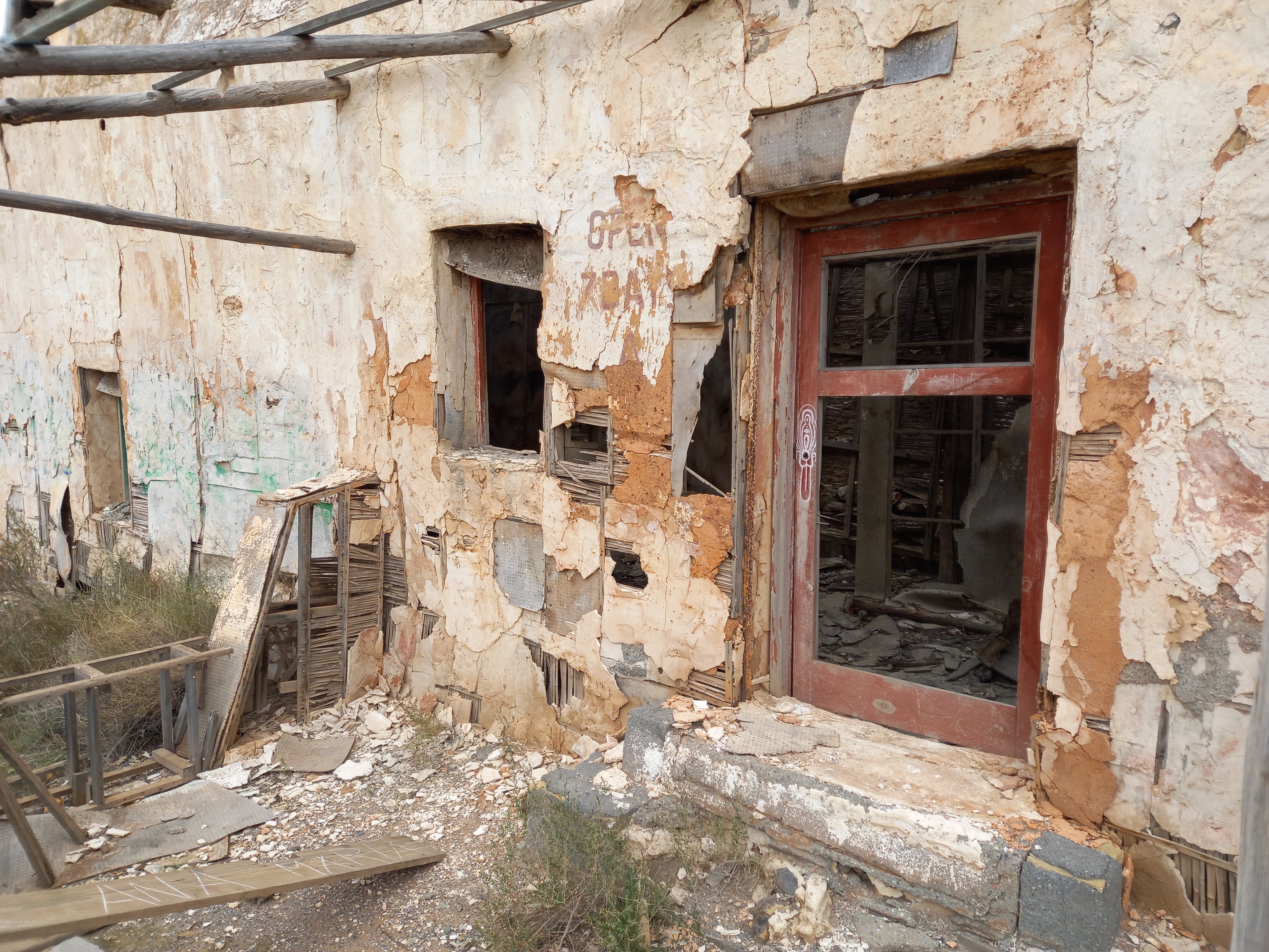 Le deuxième jour sur place, nous nous sommes lancés sur un second sentier de randonnée de près de 12 km, pas franchement bien tracé, mais agréable à faire. Cette « petite » balade nous a permis de croiser l’ancien village/décor où avait été tourné le film El Condor avec la Pension Coyote comme bâtiment principal.
