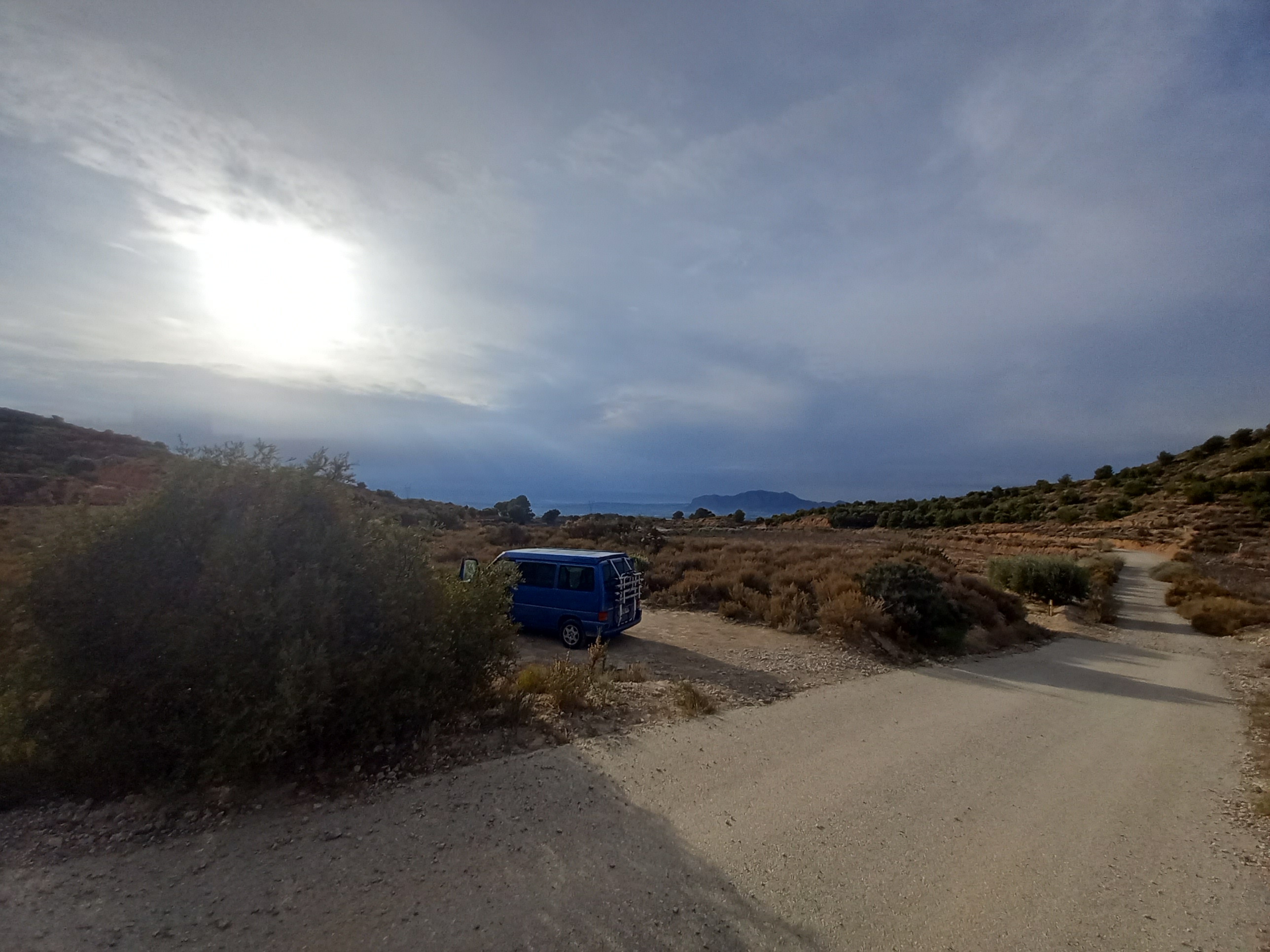 Propre comme des bébés, nous prenons la route de la côte avec l’envie de poser le van en bord de mer. Ce qui, finalement, n’est pas chose aisée dans cette région où l’ensemble du littoral a été sacrifié au profit des installations balnéaires. Nous finirons par trouver un petit coin prisé des camping-cars et des teuffers du côté de Torrenostra. Les teuffeurs situés à 2 km auront oublié d’éteindre la musique en allant se coucher. Il y a eu du bruit toute la nuit. L’avantage de ce lieu, c’est que nous sommes en pleine nature et que le paysage n’est pas vilain… nous donnant une avant goût de la suite de notre voyage, mais ça, nous ne le savions pas encore.