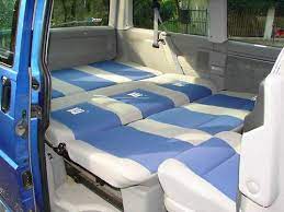 Le nôtre sera tout bleu, un bleu métallisé, une calandre retouchée qui lui donne des yeux ronds sympathiques. C’est une version Atlantis, avec une banquette 3 places à l’arrière qui est rabattable en lit et deux sièges amovibles qui lui donnent une capacité de 7 places carte grise. Il est déjà équipé à l’intérieur d’une petite table rabattable et les deux sièges en suppléments sont rotatifs. Le toit a déjà été percé pour accueillir une rehausse Zillka-Mobil, un fabriquant allemand d’équipements de loisirs pour automobiles. Ce qui permet d’avoir deux couchages à l’étage. Il ne nous restera plus qu’à aménager un peu l’intérieur à notre goût pour y vivre en voyage. Vous pouvez retrouver les photos de nos aménagements dans l’onglet ArnO’Bricol.